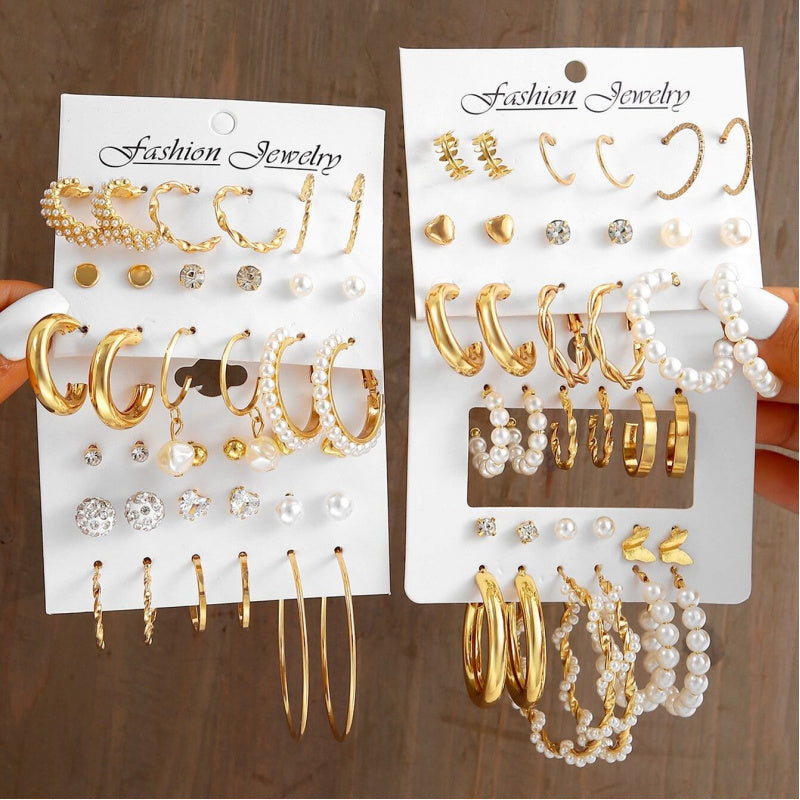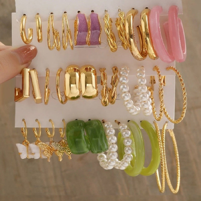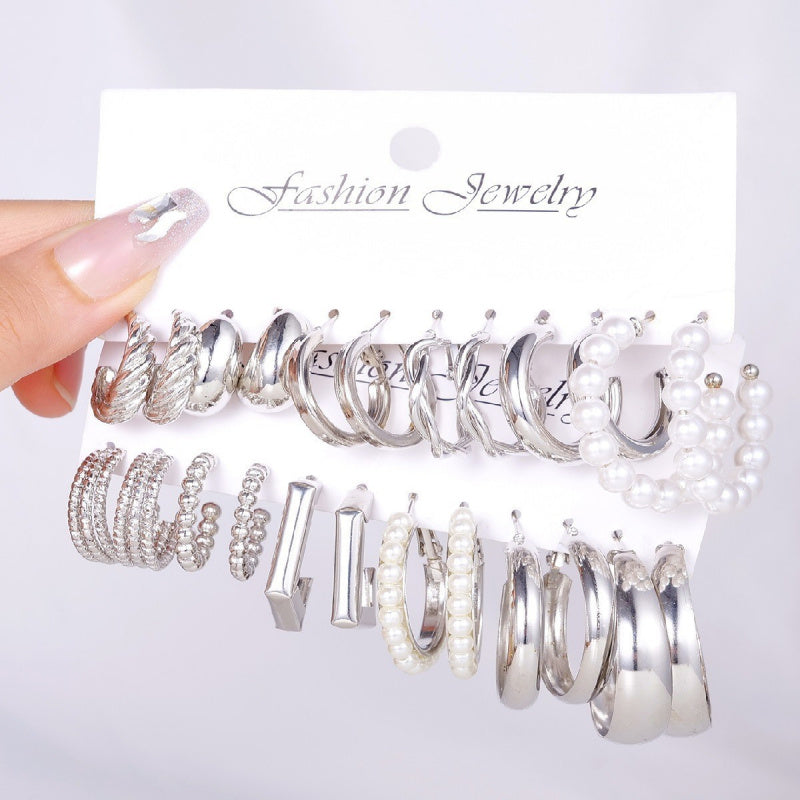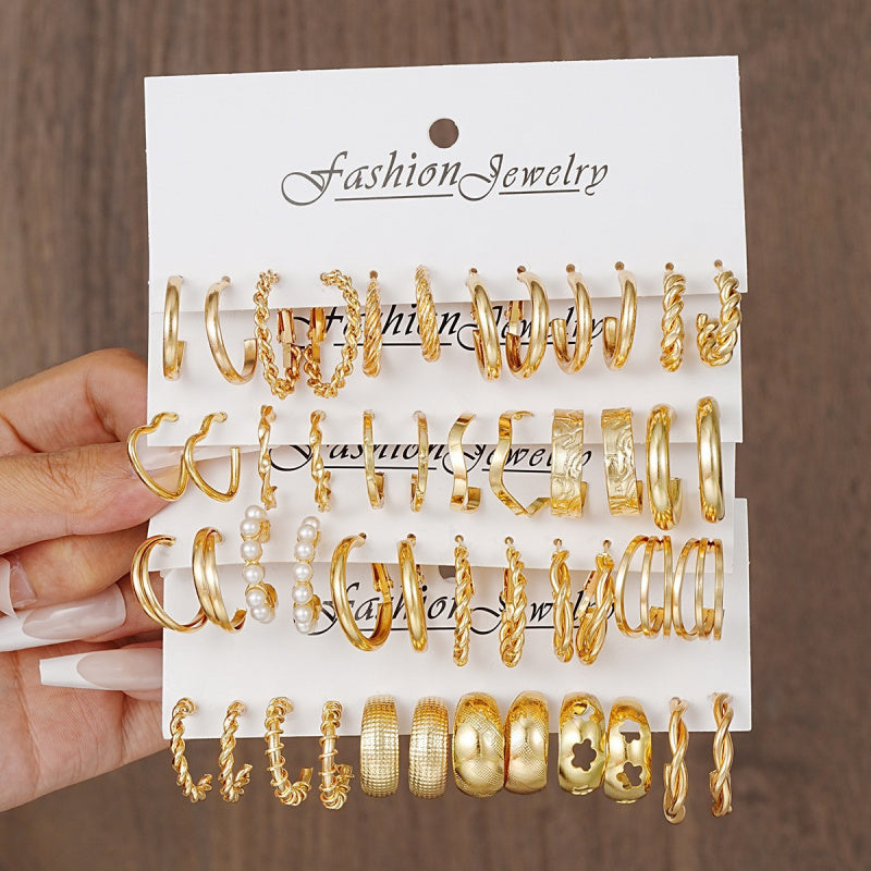 Fashion European and American style gold C chain earrings suit ladies temperament luxury high-end earrings