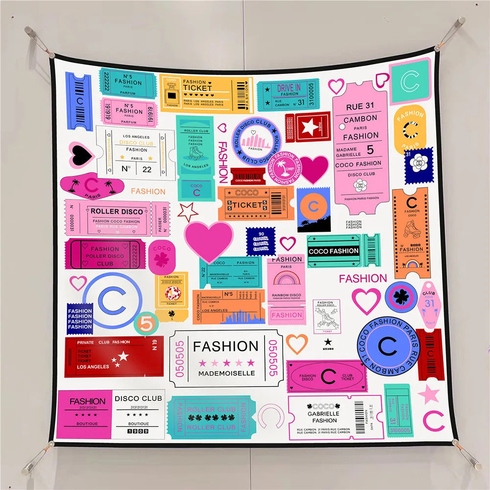 Fashion Graffiti Neckerchief Luxury Square Scarf for Women Silk Shawl Satin Hijab Wraps Hair Bands Headband Bandana Ribbon