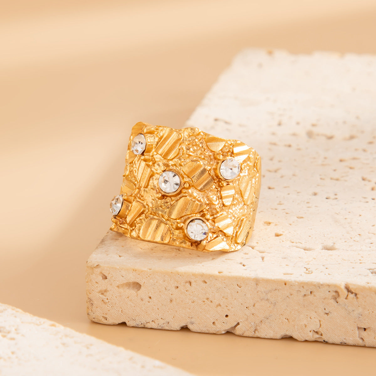 Fashionable Hollow Inlaid Irregular Ring Vintage Alloy Wrinkled Ring Set