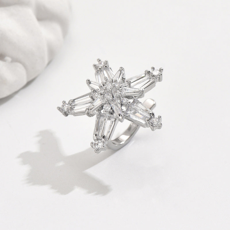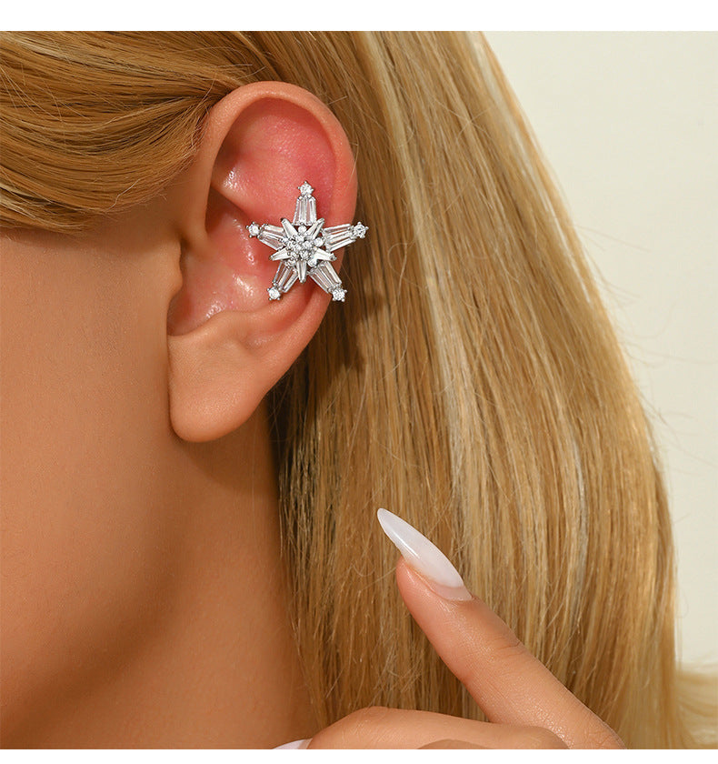 Five-Pointed Star Ear Clip Full Diamond Copper Earrings Studded with Zircon Korean Style Ear Clip Simple Fashion Sweet Non-Piercing Ear Clip