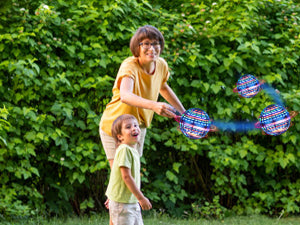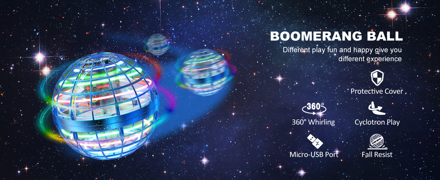 Grip the flying orb,tilt it upwards at a 30° angle, then throw it.Watch as the flying toy gracefully returns to your hand in its original direction