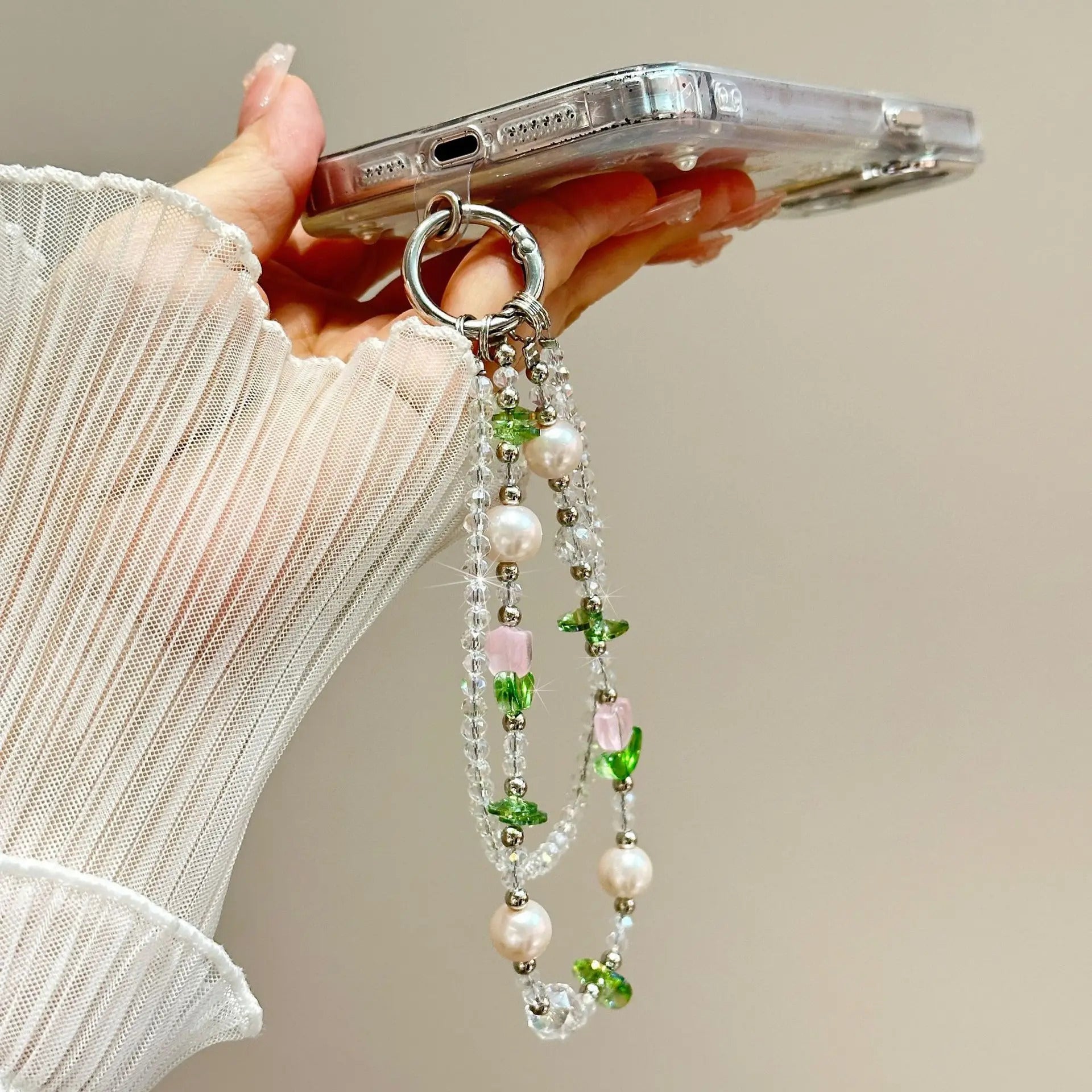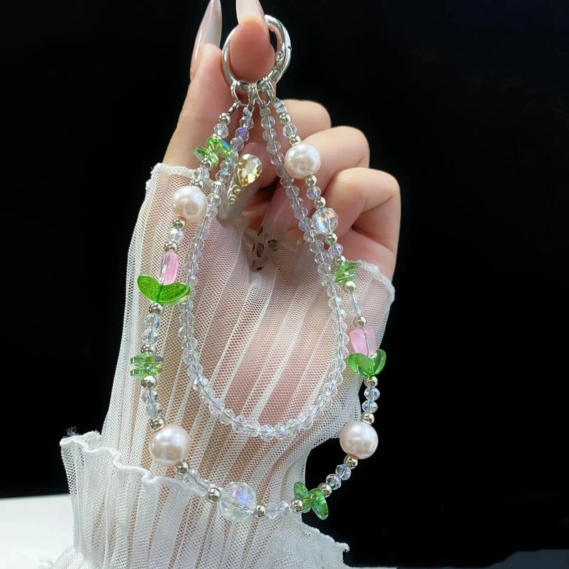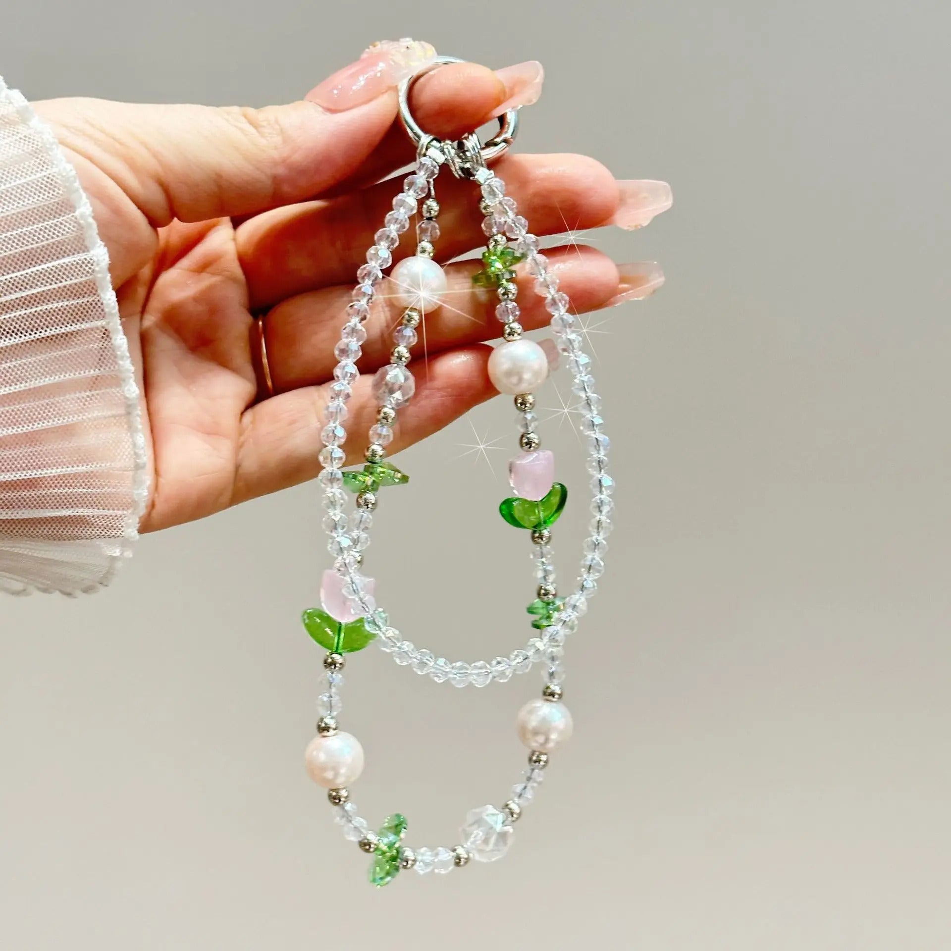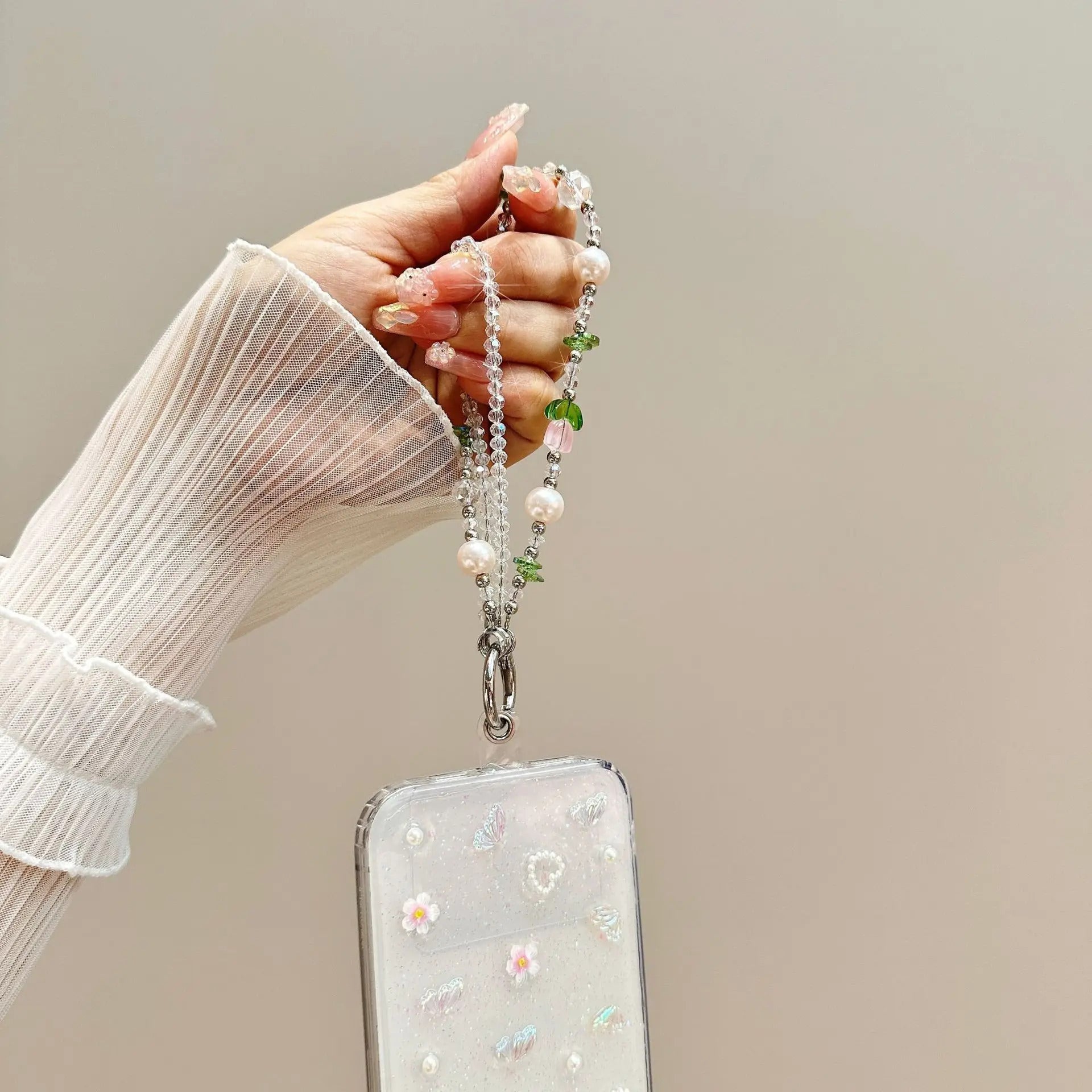 For 16 Mobile Phone Chain Dazzle Tulip Butterfly Double Chain Crystal 15 Mobile Phone Case Chain Lanyard Gradient Niche Fashion