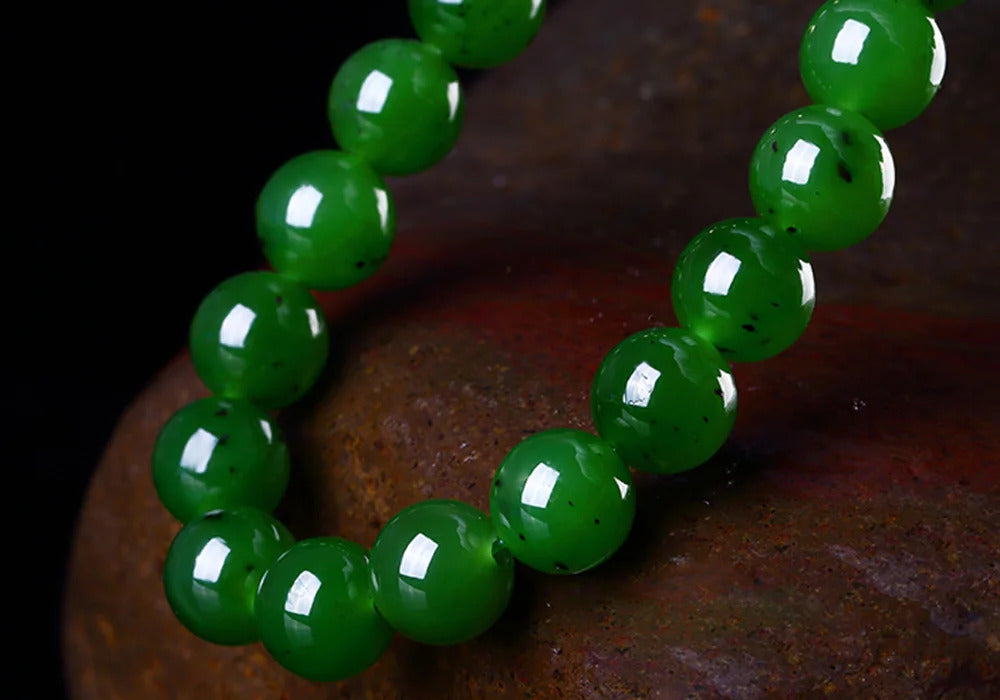 Genuine Natural Green Jade Bracelet Women Men Hetian Jades Round Stone Beads Beaded Bangles for Girlfriend Mom Gifts Jewelry