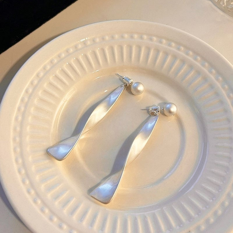 Geometric Ribbon Back Hanging Earrings for Women Simple Elegant Two-Way Wear Round Bead S925 Silver Plated Needle Earrings Versatile Ear Jewelry