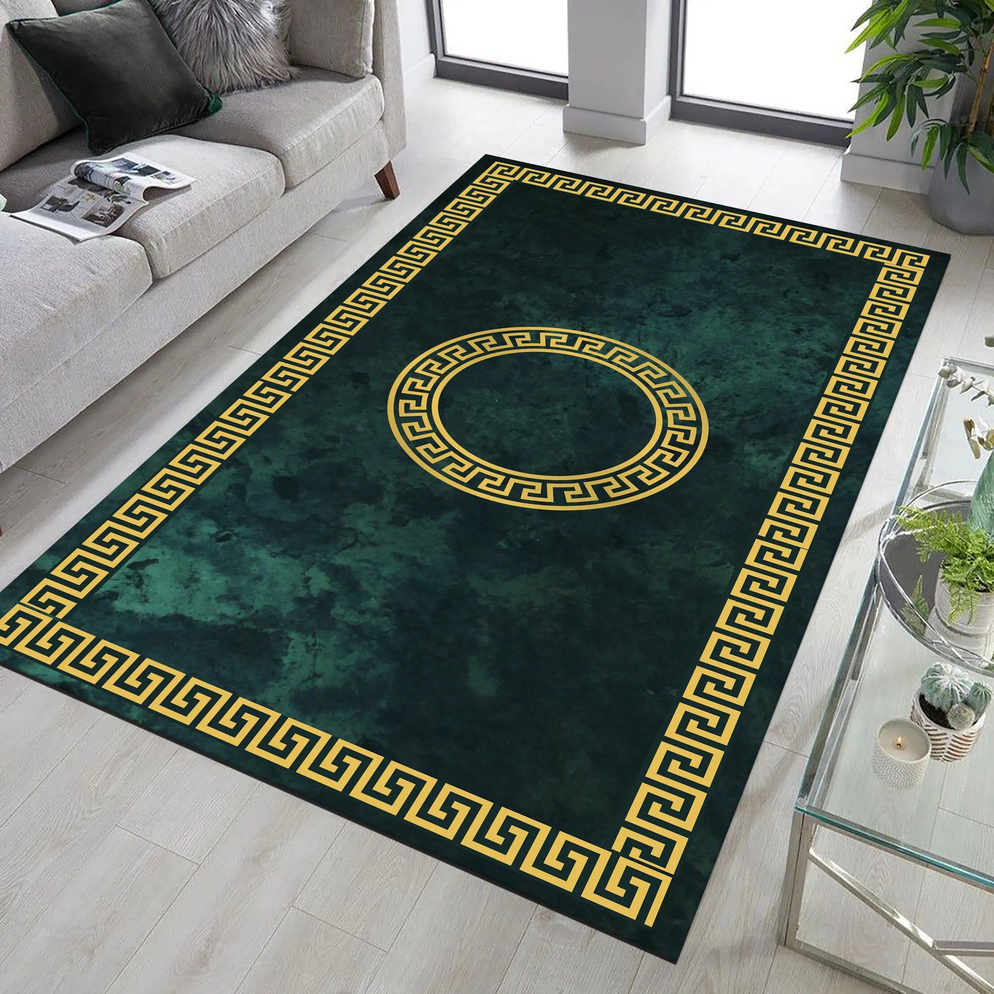 Green and Gold Ancient Greek Wave Rug Greek Mythology Modern Light Luxury Rug Printed Carpet Home Decor Living Room Rug Area Rug