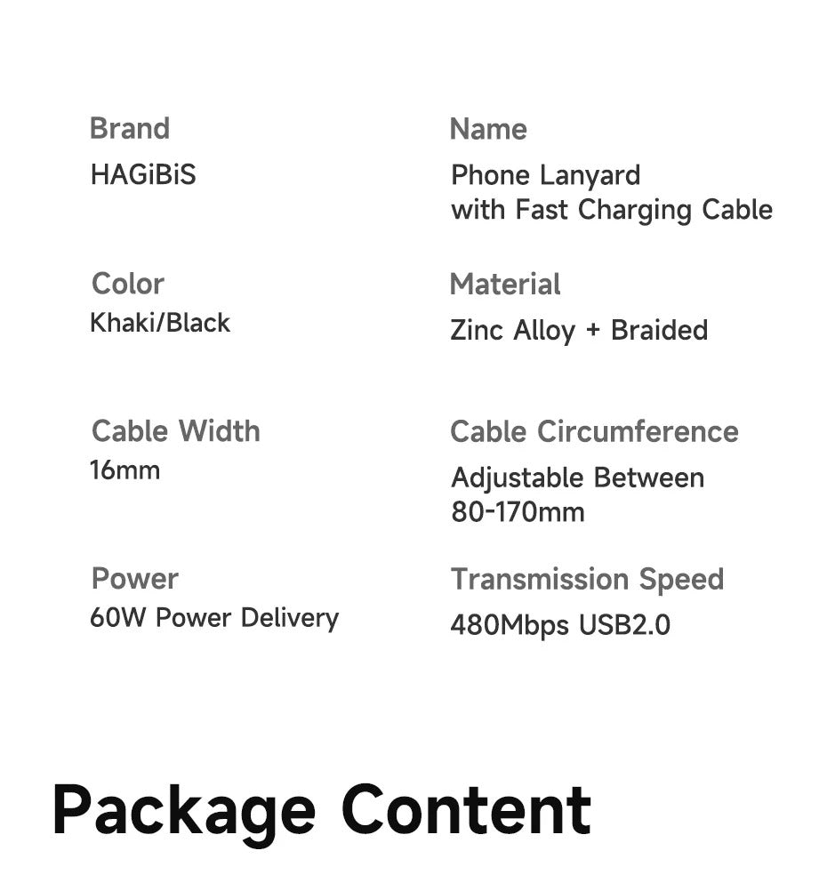 Lanyard & Cable 2in1 Design:Hagibis phone lanyard and the vast majority of products on the market is different is to increase the function of the data cable, to meet the charging needs of your travel, more portable and practical.The second generation widened the width of the cable, make you comfortable to wear and reduce the burden