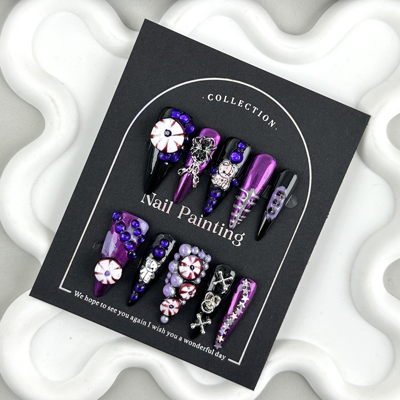 Halloween Style Exaggerated Cool Dark Wearable Nail Tips High-End Handmade Nail Stickers