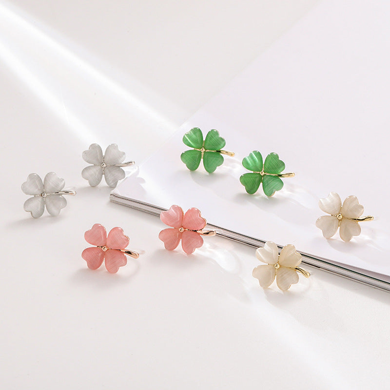 Heart Clover Mosquito Coil Clip-On Earrings Without Piercing Cat's Eye Stone Earrings for Women Sweet Studs Light Luxury Elegant Earrings