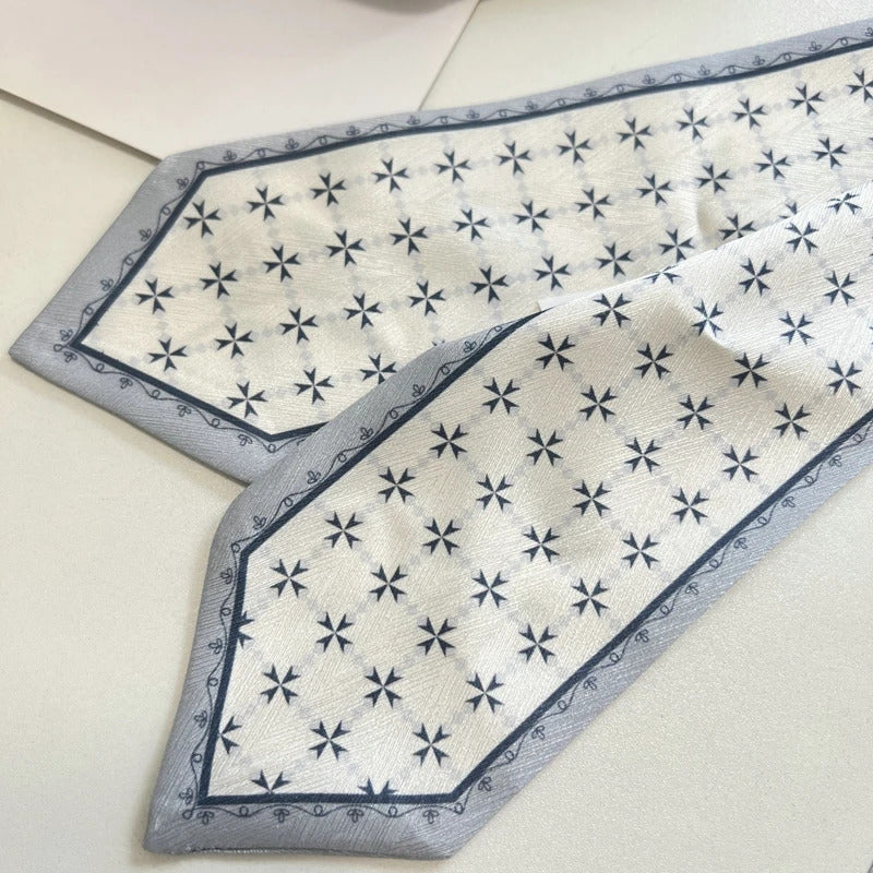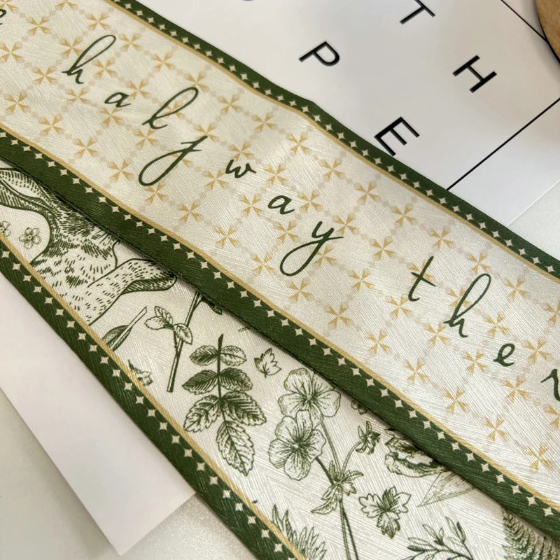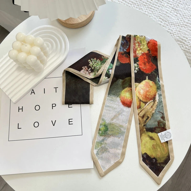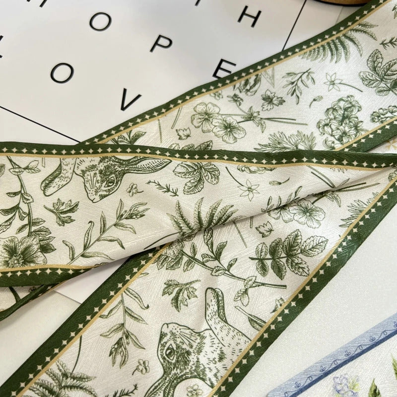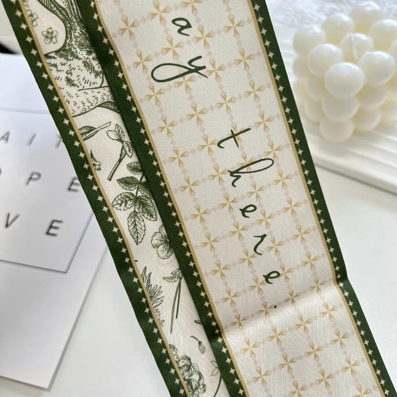 High-Grade Flower Print Long Silk Scarf Hair Band Ribbon Tied-up Hair Long Bow Vintage Satin Ribbon Hair Accessories For Women