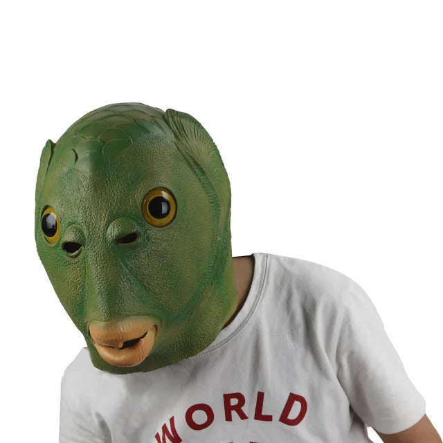 Hip Hop Animal Green Head Fish Mask Head Cover Halloween Green Fish Man Green Fish Head Monster Mask Performance Head Jewelry