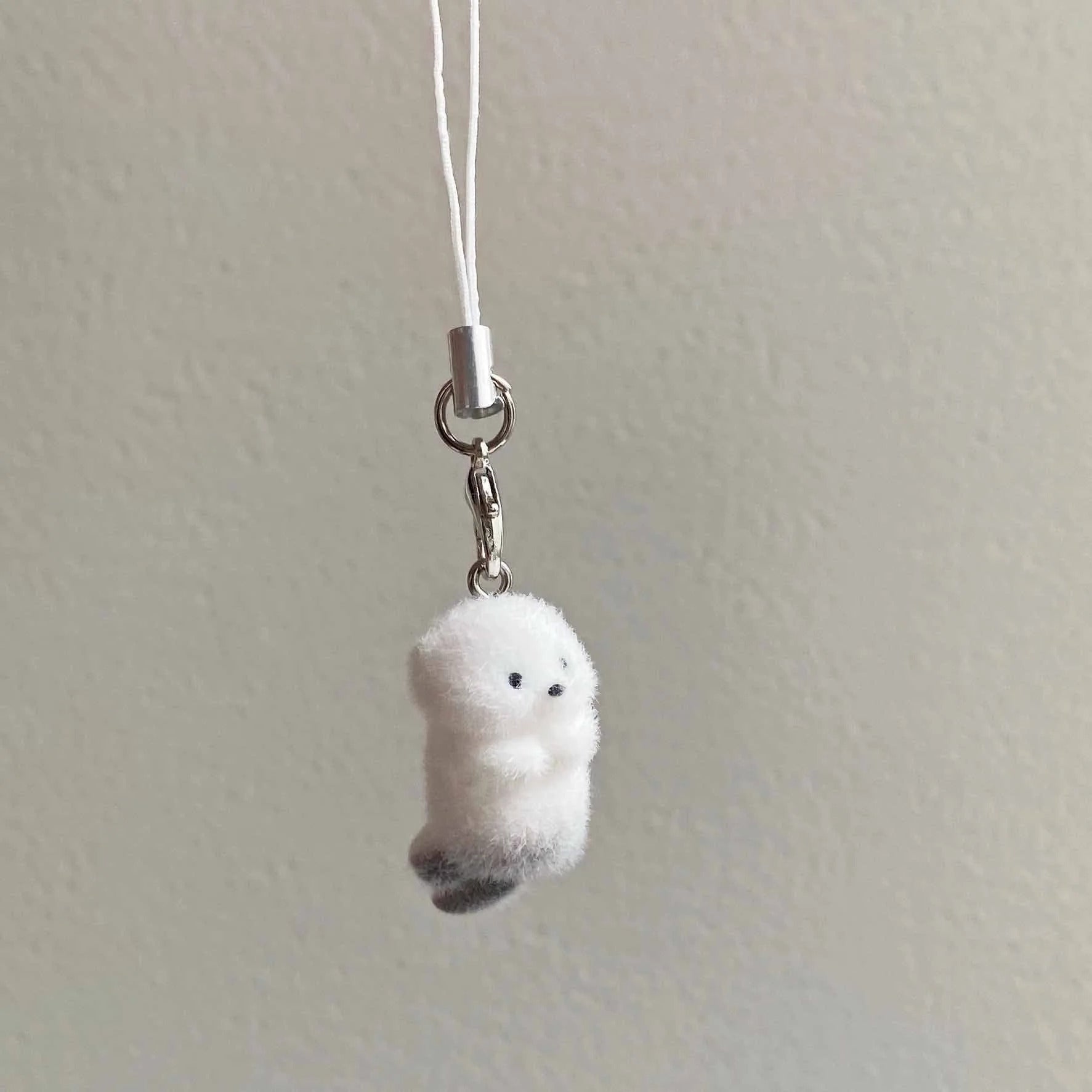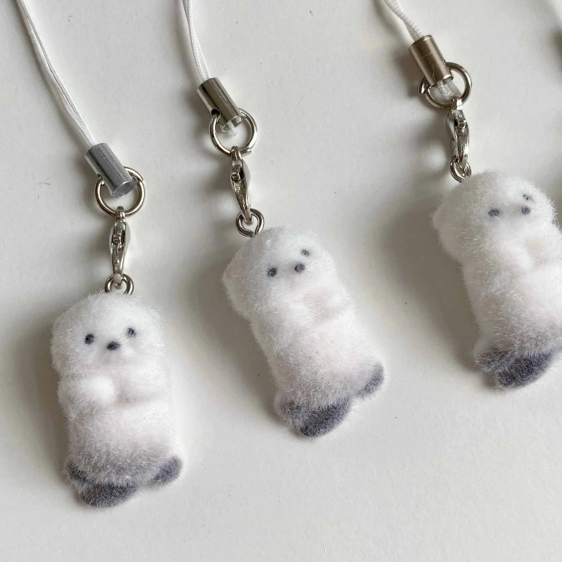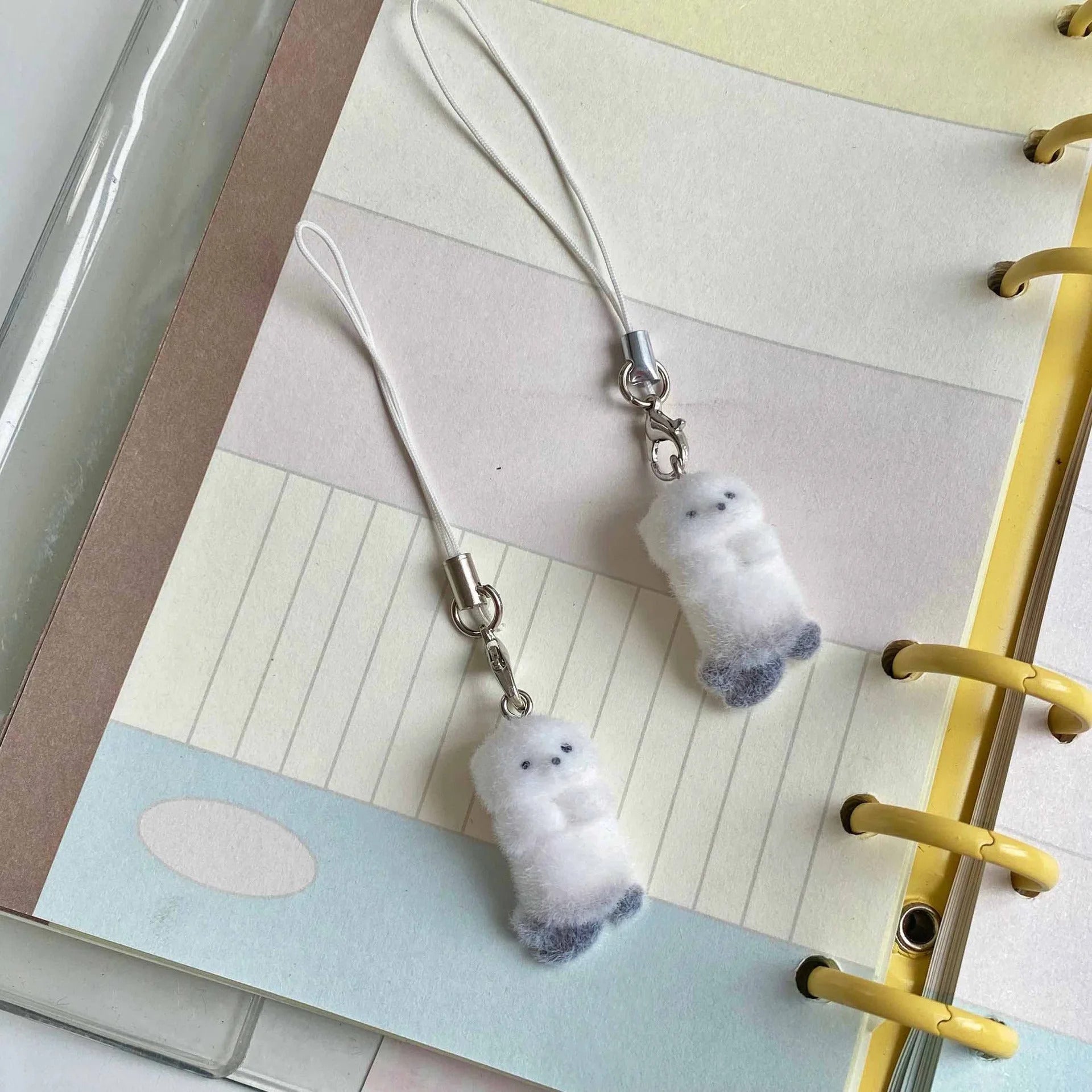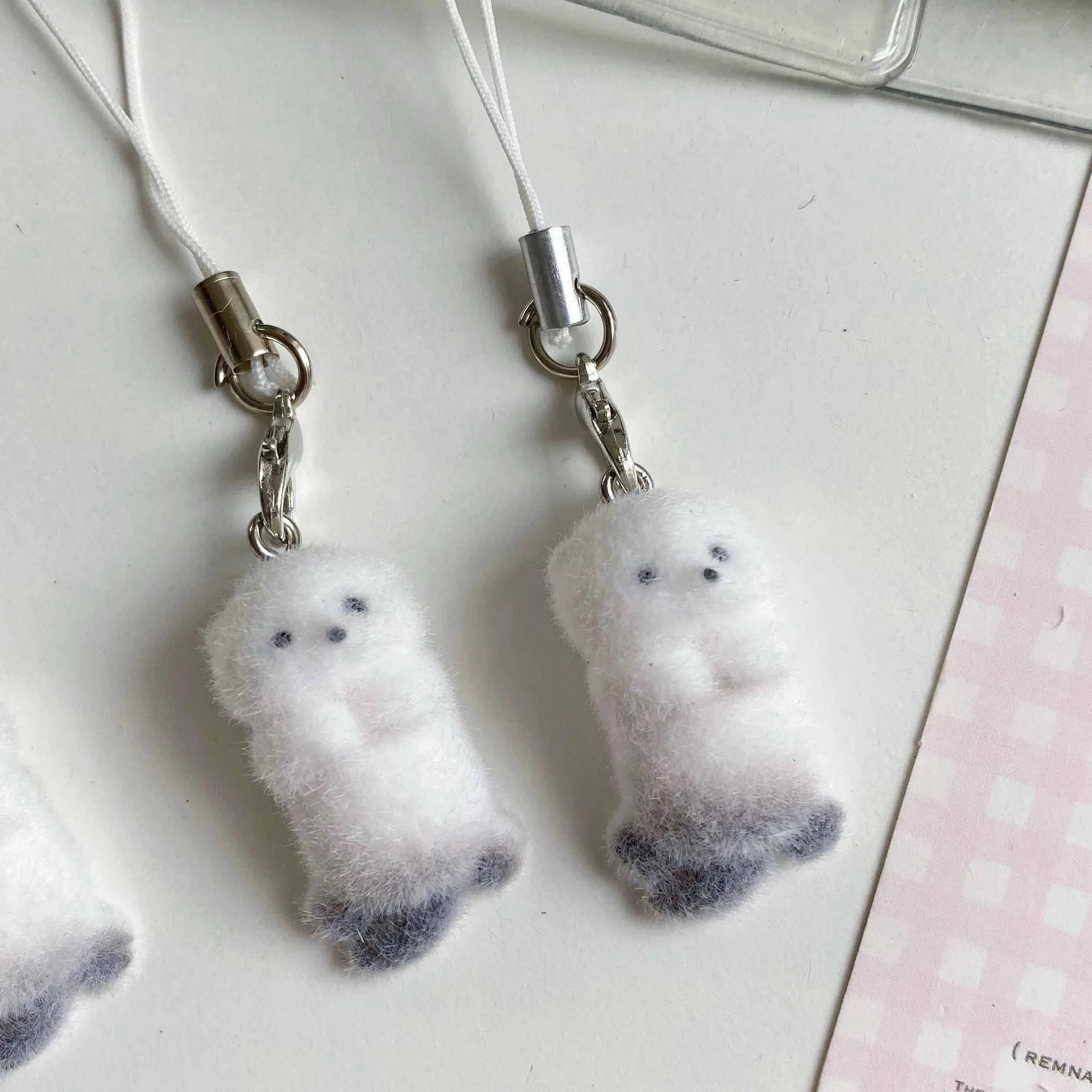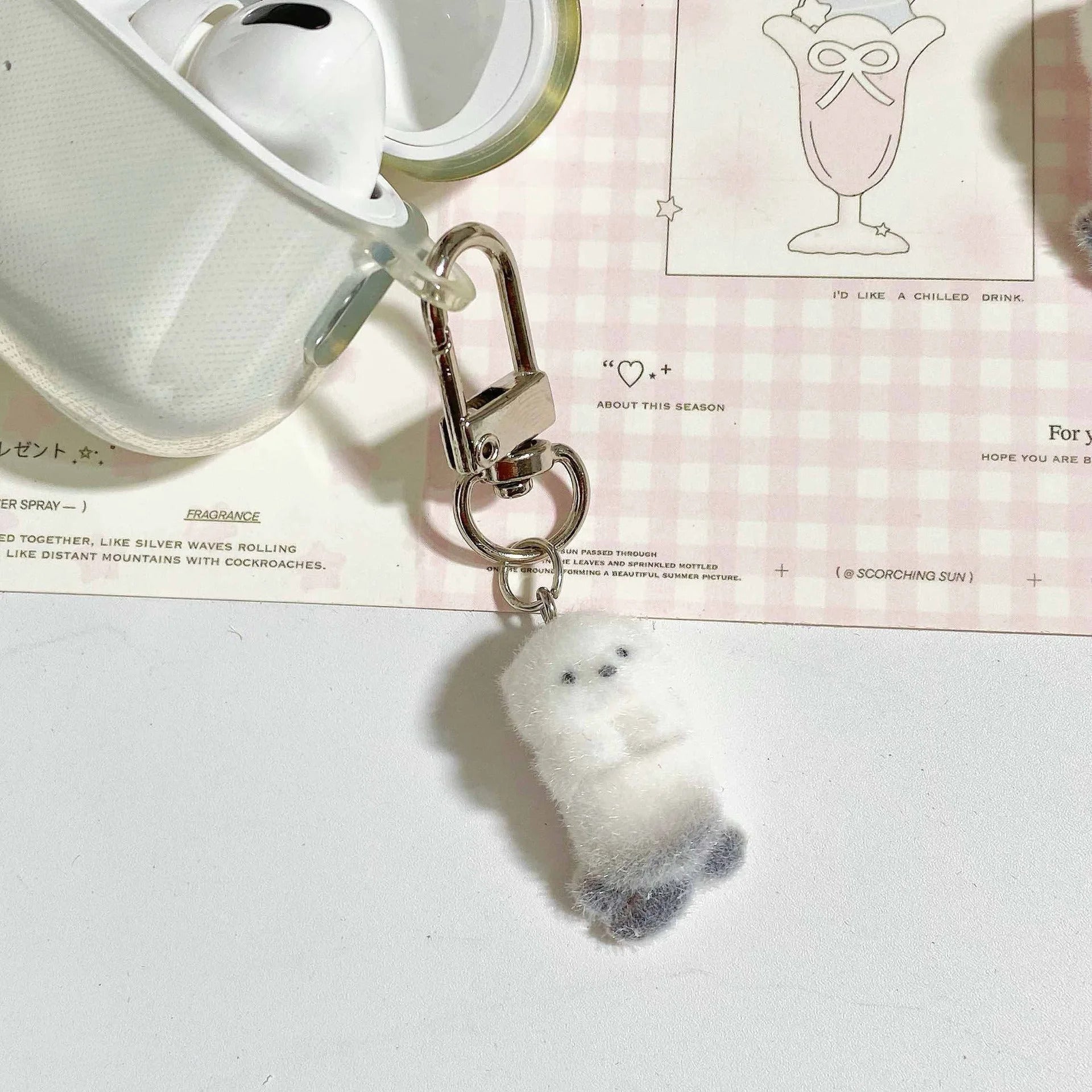 Ins Style Cute Seal Shape 3D Keychain Phone Charms Strap Kawaii Plush Flocking Pendant for Airpods Schoolbag