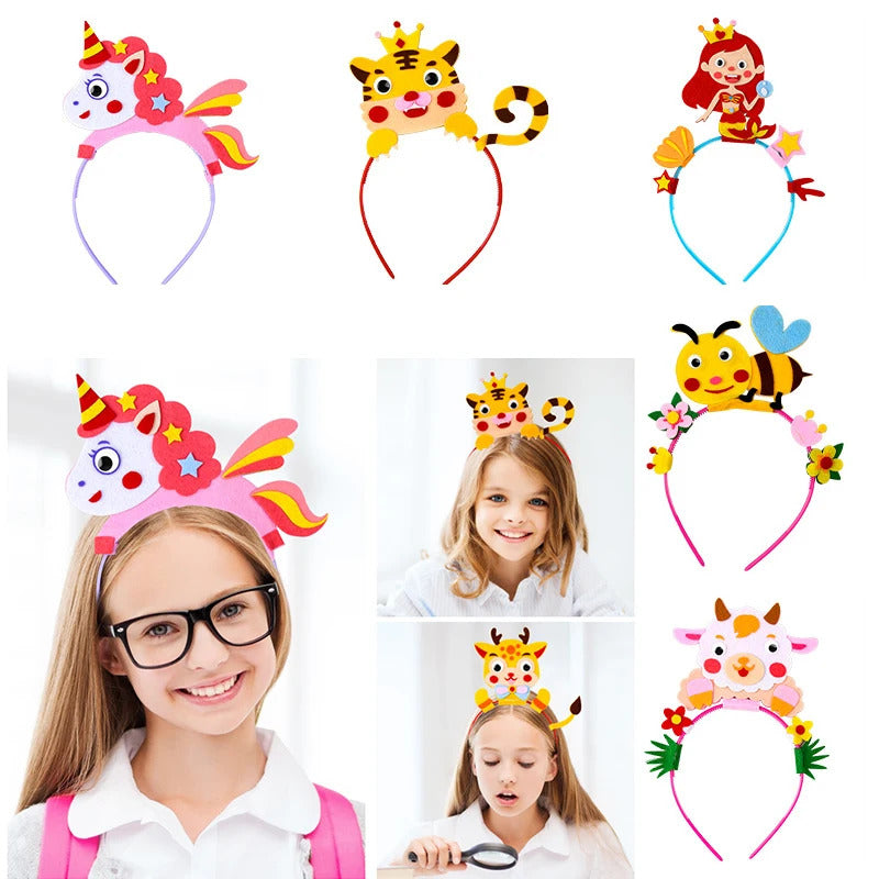 Kids Creative Crown Hat Princess DIY Craft Toy Cartoon Animal Headwear Educational Toys For Girls Handmade Decoration Gift