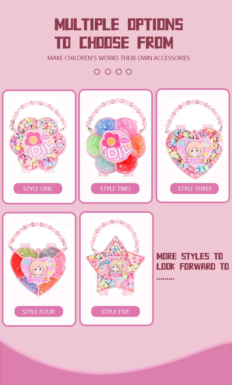 Kids DIY Jewelry Beaded Handbag Beads Toys Handmade Set Children's Playing House Puzzle Education Toy Girls Gifts Color Random