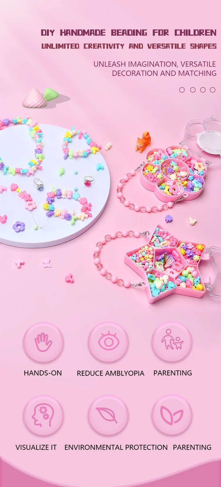 1.Unlimited creativity: you can create necklaces, bracelets, earrings, ornaments and other accessories, and even home decorations such as vases, tissue boxes, etc., to