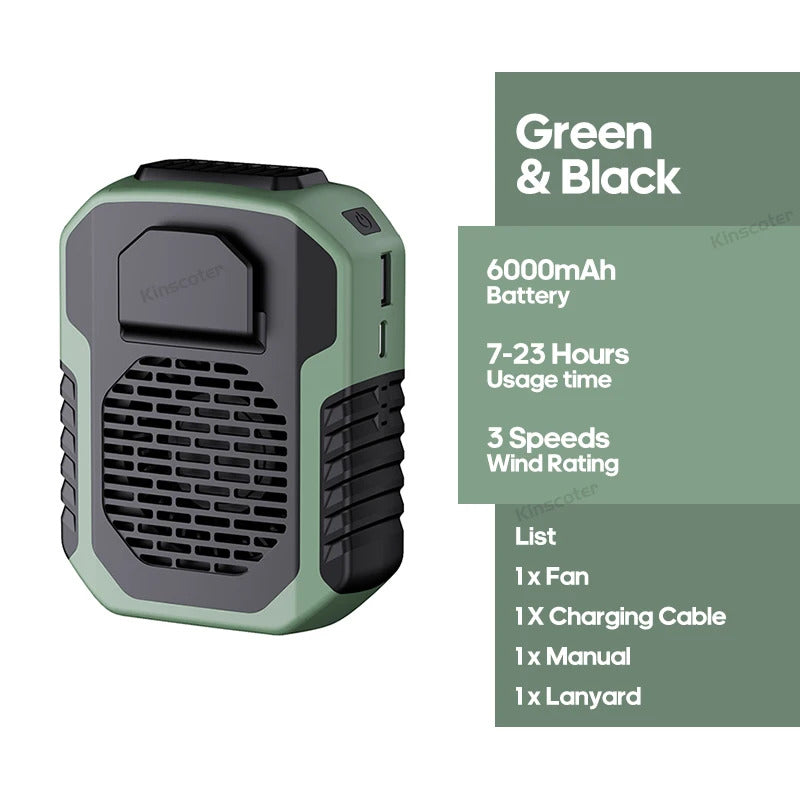 KINSCOTER Outdoor Hanging Waist Fan 6000mAh Portable Waist/Neck Fan Cooler Ventilator 3 Speeds Silent Long Use Life Electric Fan
