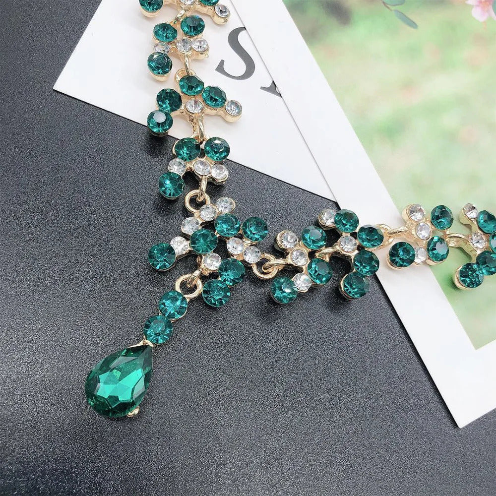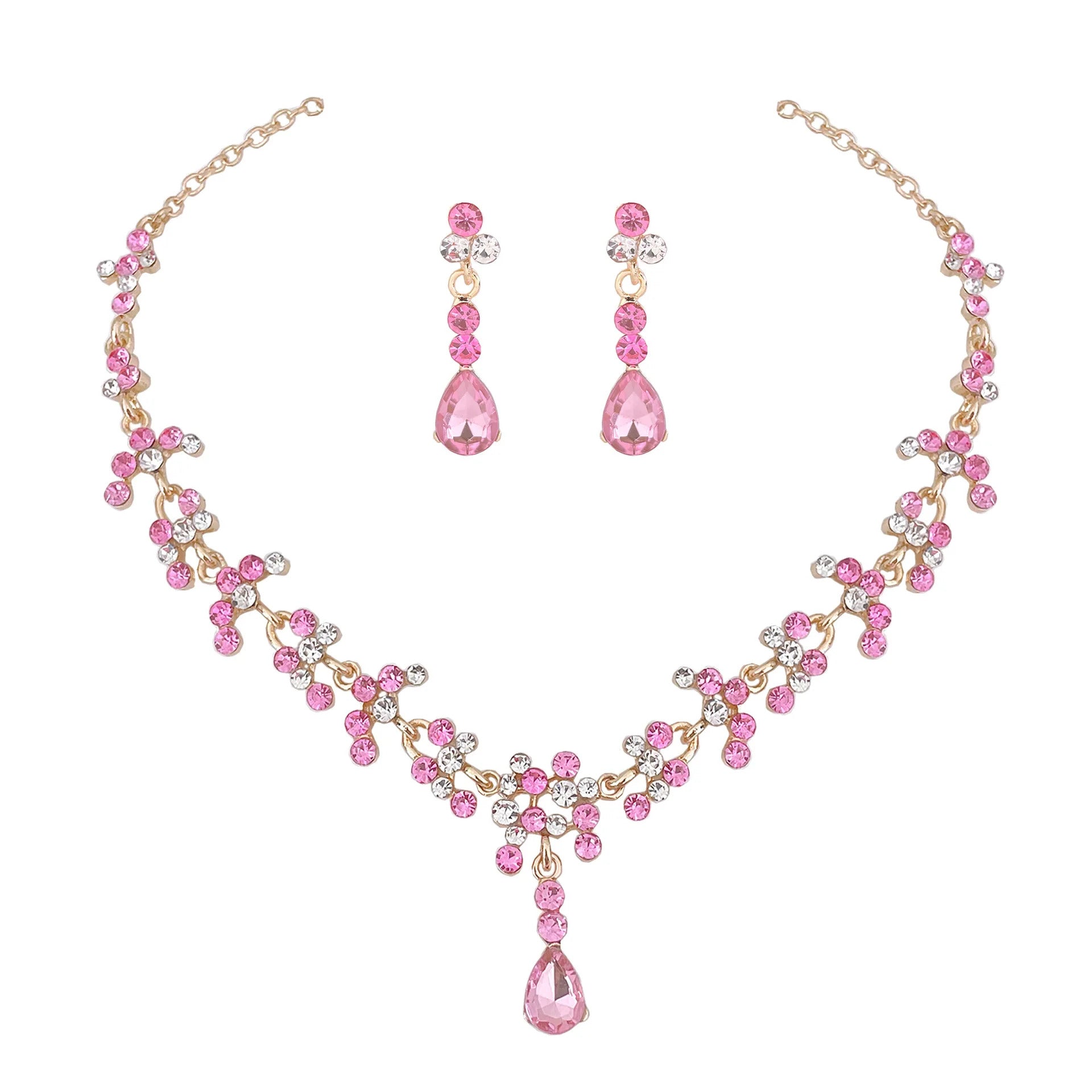 KMVEXO Crystal Bridal Wedding Jewelry Sets Women Gold Color Rhinestone Necklace Long Earrings Set Dress Accessories Bridesmaid