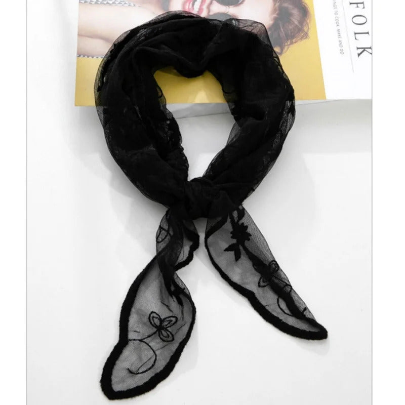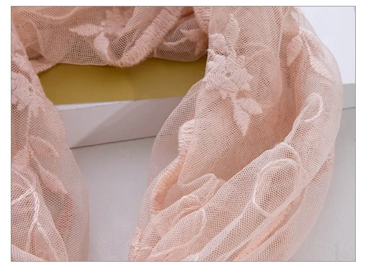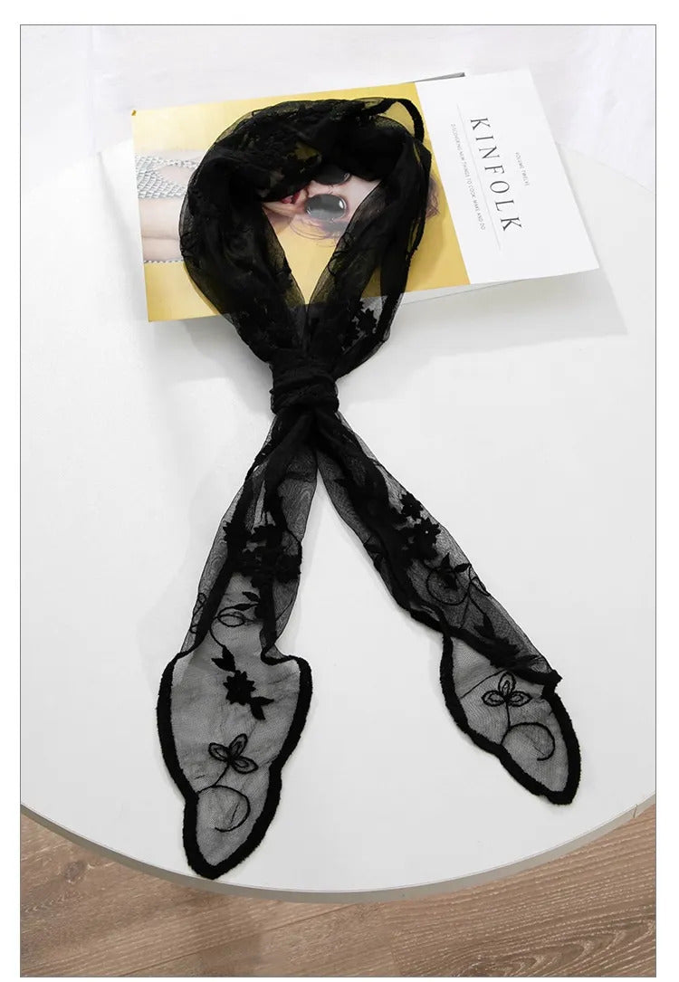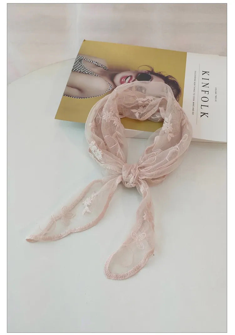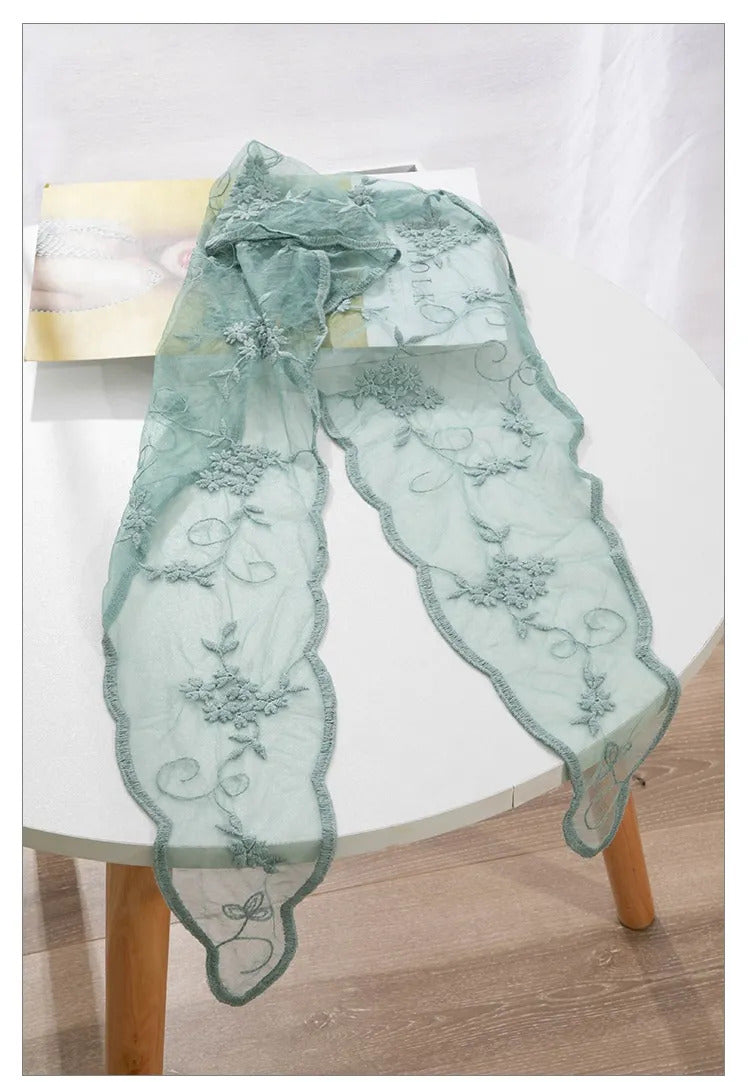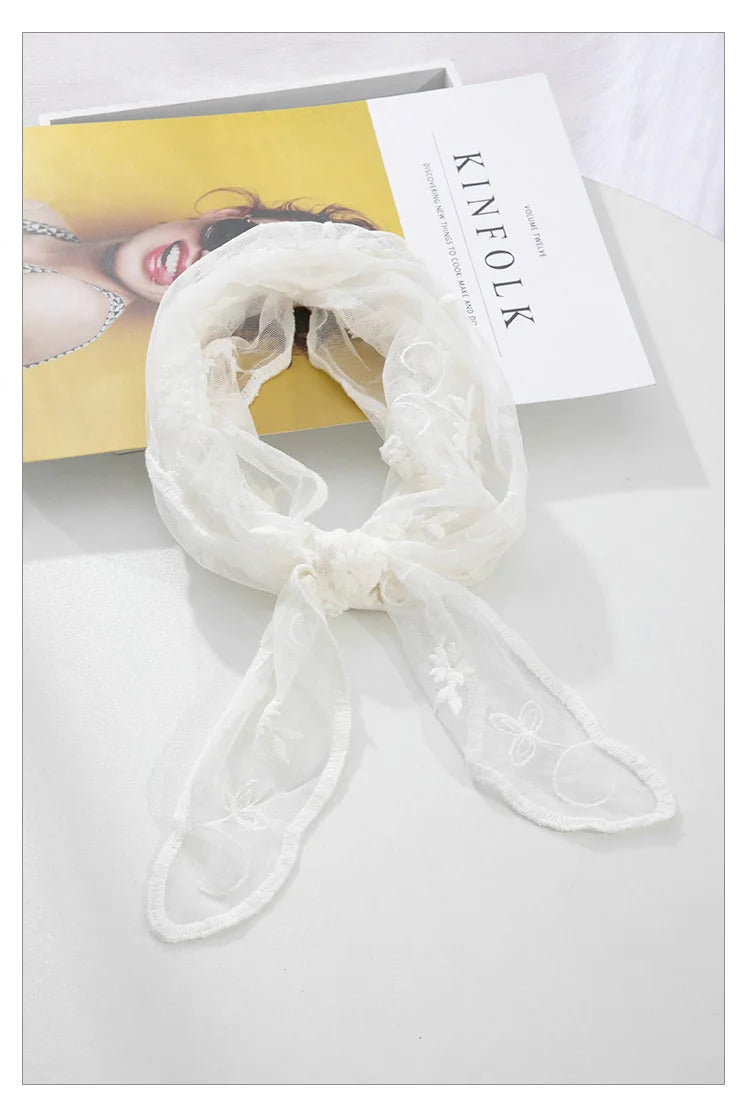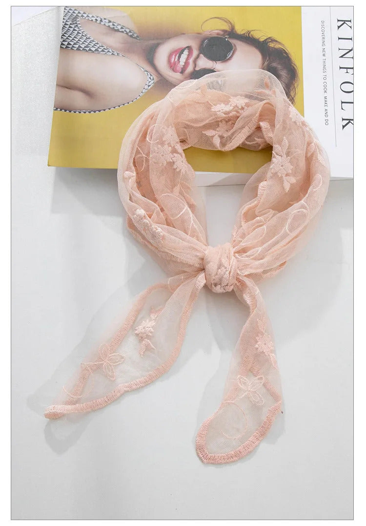 Korean Lace Embroidered Long Silk Scarf Sunscreen Neck Protection Pastoral Lady Beautiful Triangular Embroidered Spring Summer