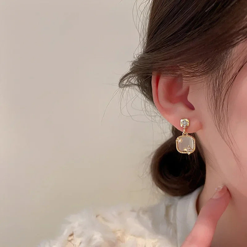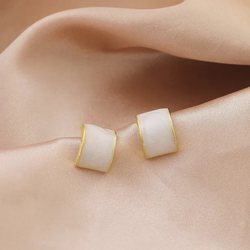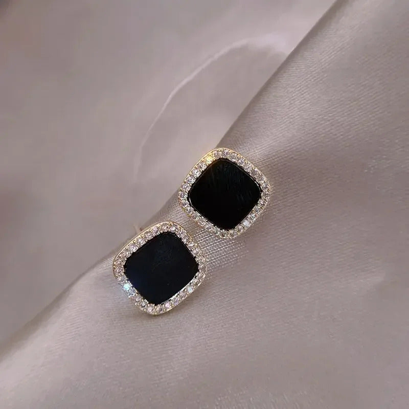 Korean Style Zircon Black Resin Square Ear Studs for Women Elegant Luxury Geometric Earrings 2024 Fashion Trends Jewelry Gifts