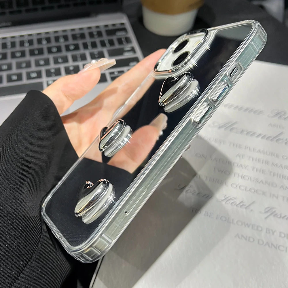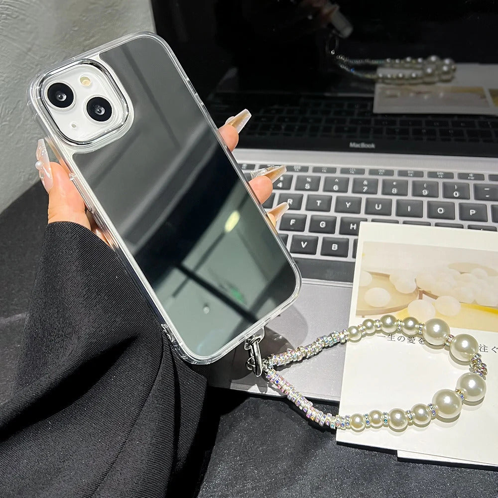 Love Heart Lanyard Mirror Phone Case For iPhone 13 11 16 15 Pro Max 12 14 Plus XR X XS Case Wrist Chain Makeup Mirror Soft Cover
