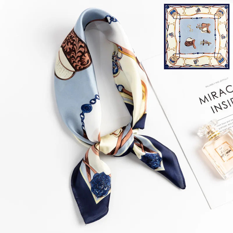Luxury Popular Stripe Square Silk Scarf Women Headcloth Four Seasons Sunscree Fashion Letter Silk Scarves bandanna foulard