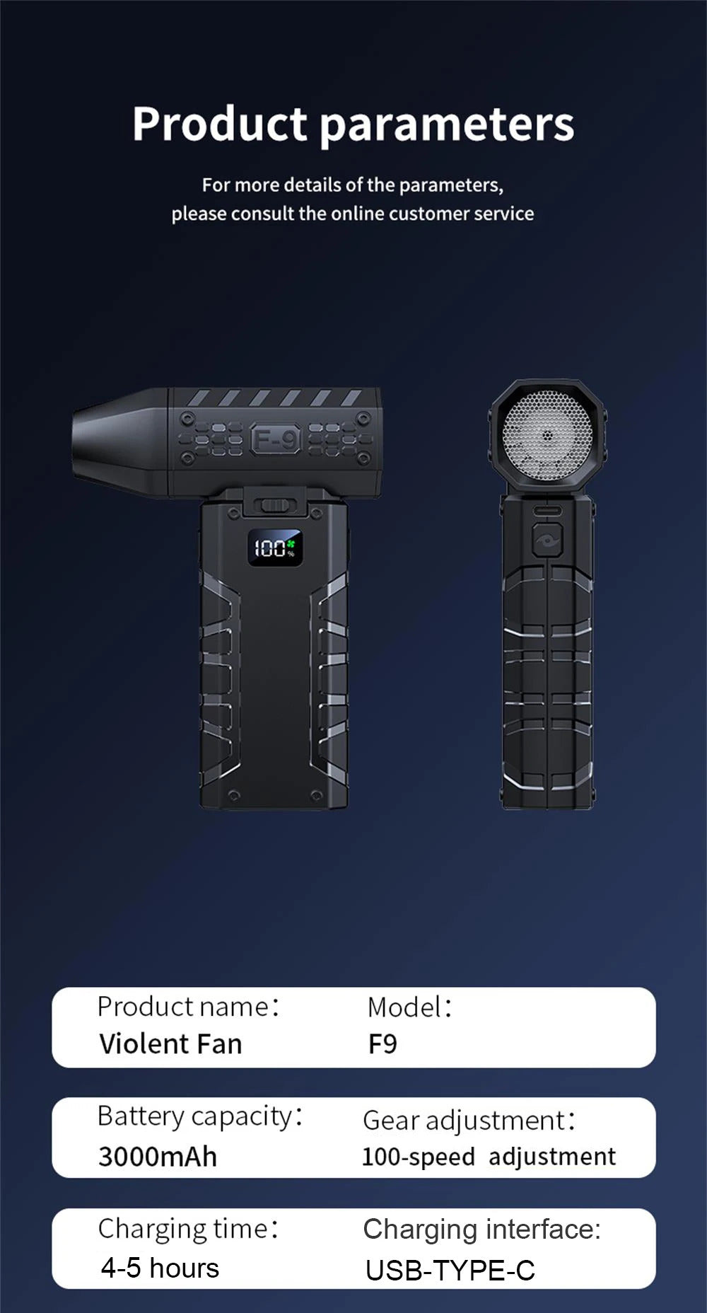Mini Turbo Jet Fan Portable Handheld Violent Blower USB Rechargeable Strong Winds Speed Turbo Fan Outdoor Brushless Hand Fan