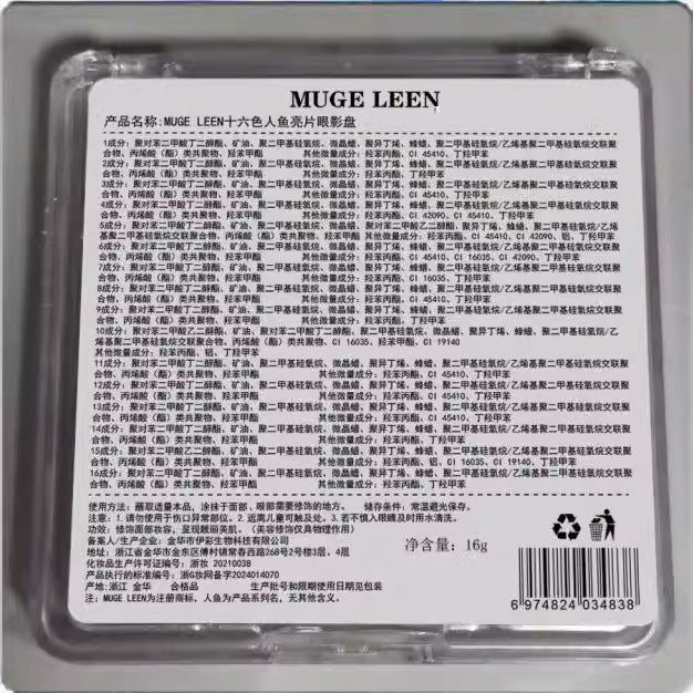 MUGE LEEN Sixteen Colors Mermaid Glitter Eyeshadow Palette Shimmering Sparkling Makeup Performance Mermaid Glitter