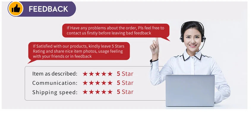 1.Working time: Monday-Friday (Beijing Time : 9:00-18:00) 2.We usually ship item out within 1-2 work days . 3.We will answer your messager in 1 work day .Please notice it . 4.Any problem , please contact us in order , We will handle it asap .Please do not open the dispute or leave us a badfeedback Before contact us . Kindly Note : >>Color and size difference:due to the screen resolution, lighting effect and the meas-urement error,