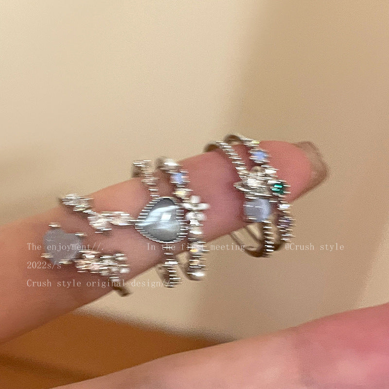 Navy Blue Love Moonlight Open-End Zircon Ring Female Light Luxury Minority Design Sense Index Finger Ring Temperament Adjustable Ring