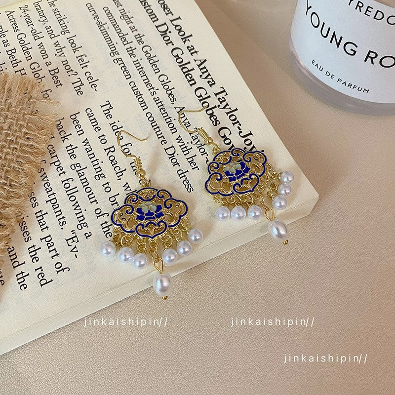 New Chinese Style Butterfly Flower Water Drop Earrings for Women Chinese Style Ancient Style Earrings Retro Cheongsam Hanfu Cool Earrings