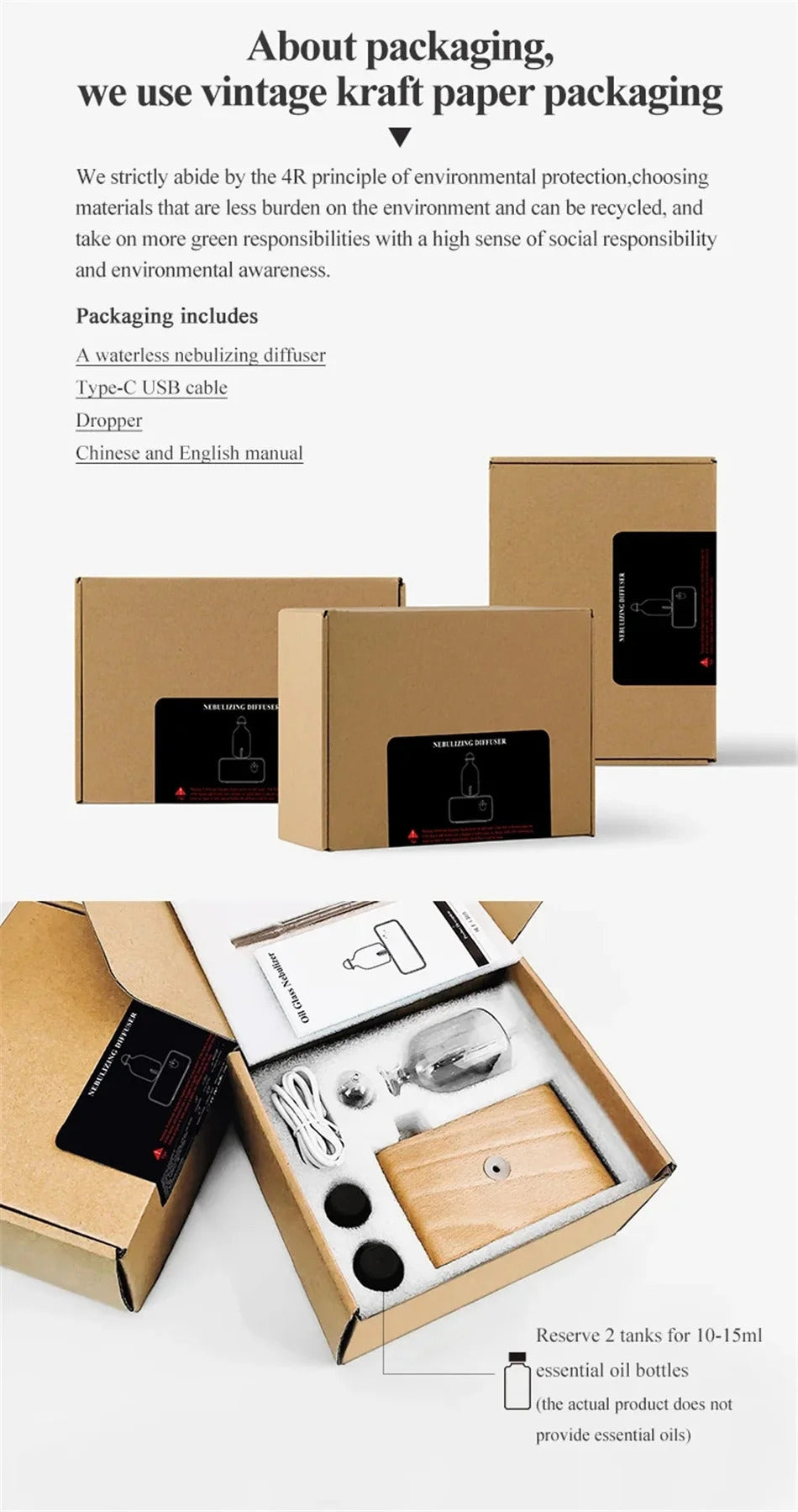New Essential Oil Diffuser Waterless Operated Aromatherapy Diffuser for Home Office Wood and Glass Aroma Diffuser Scent Machine