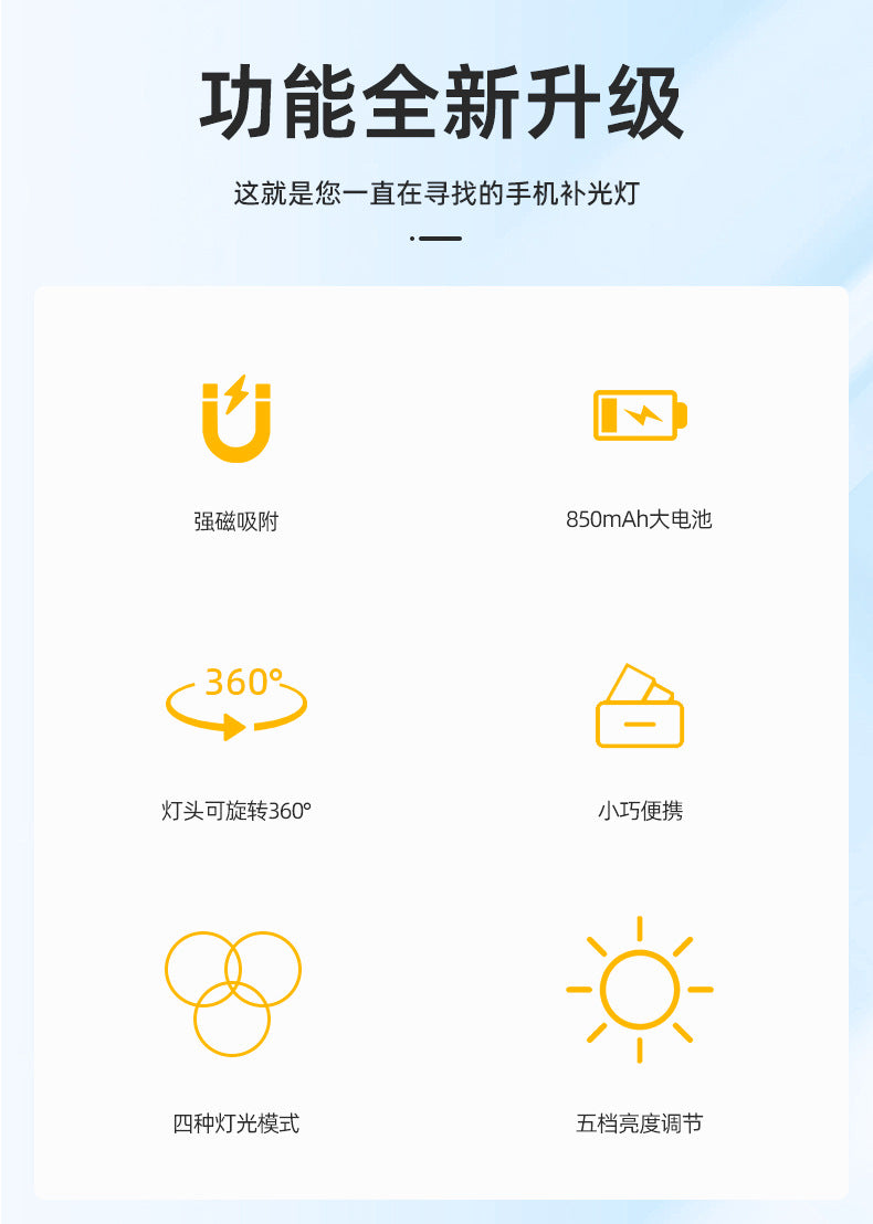 Beauty Magnetic Selfie Phone Fill Light with Built-in Makeup Mirror buy one, get one free