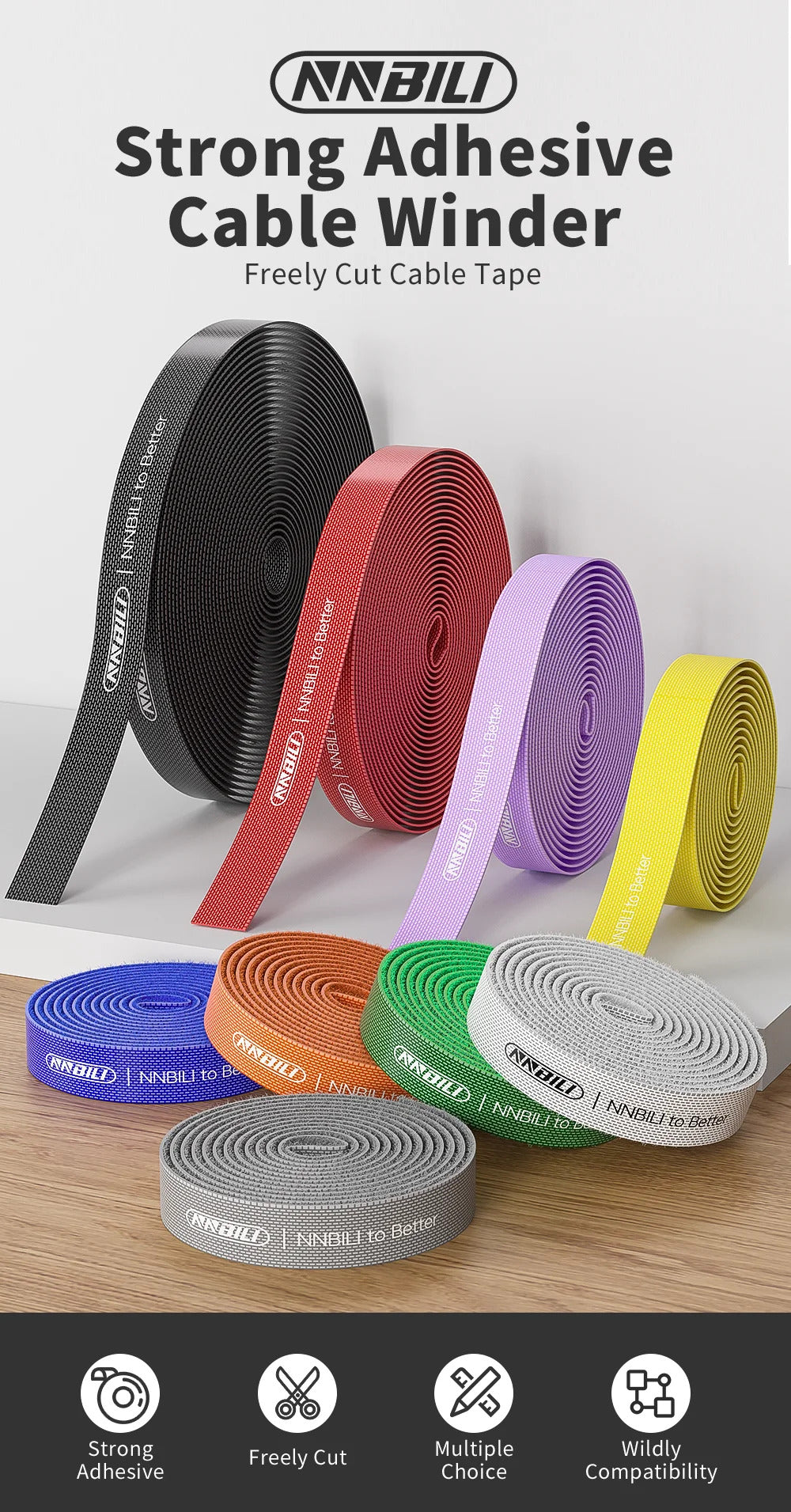 NNBILI Data Cable Management Strap Reusable Detachable Can Be Cut Freely Multifunctional Velcro Strap Fixed Storage Accessories