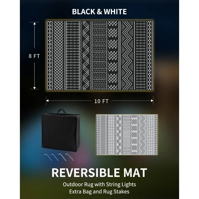 Outdoor Rug Carpet Waterproof 8x10 ft with LED Strip Lights-Patio Rug Mat Indoor Outdoor Rug for RV Camping Picnic