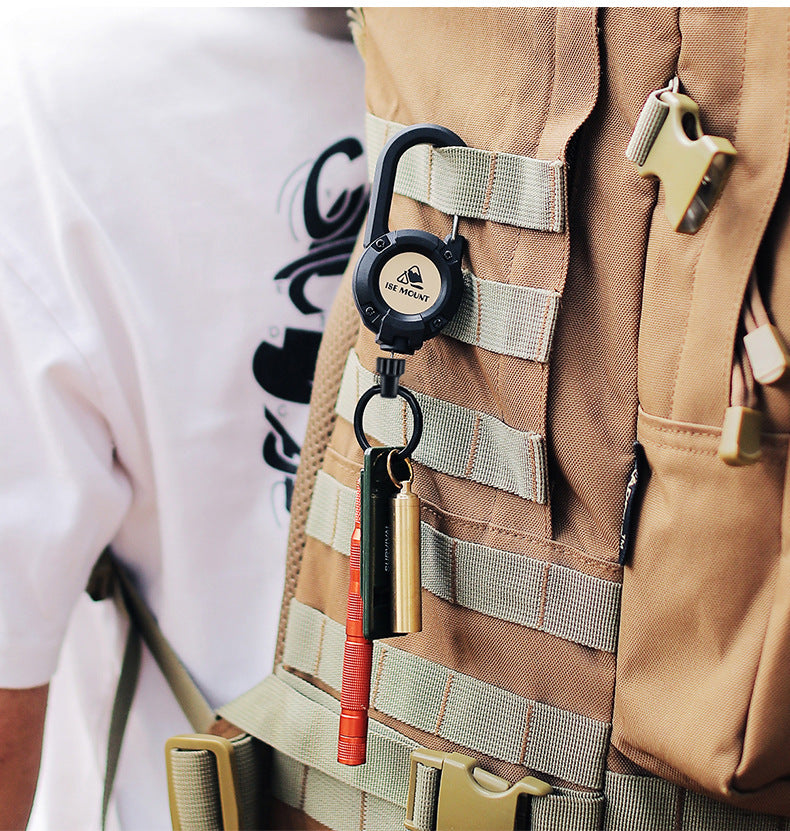 Outdoor Tactics Can Buckle Retractable Buckle Steel Wire Rope Multi-Functional Keychain Camping High Rebound Anti-Separation Rope Pull Peels