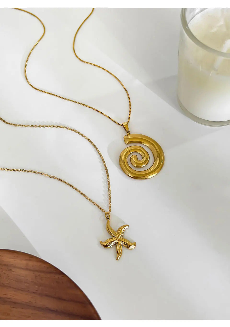 Peri'sbox New Fashion Starfish Hollow Vortex Spiral Pendant Necklace for Women 18K Gold Plated Tarnish Free Jewelry Gifts Summer