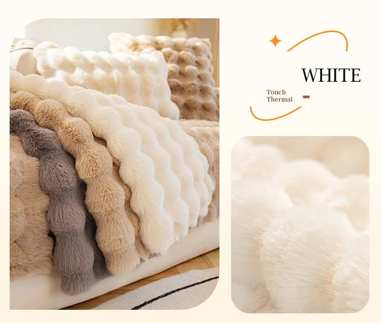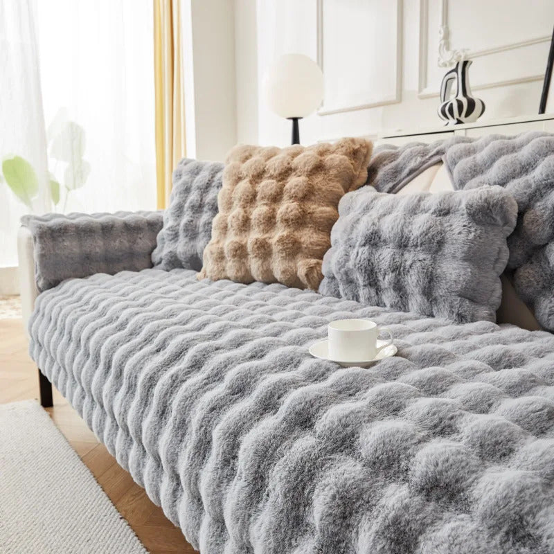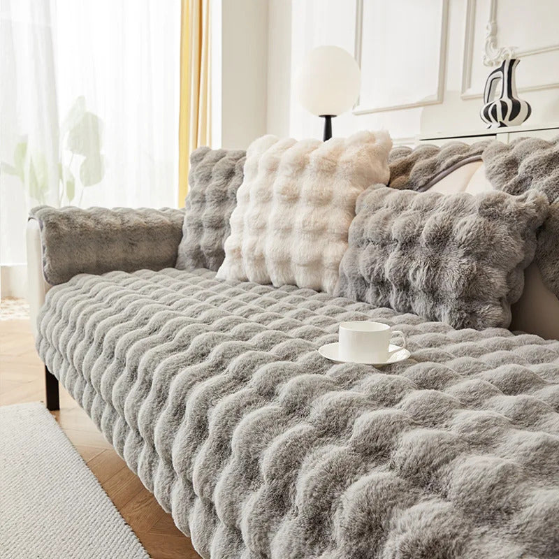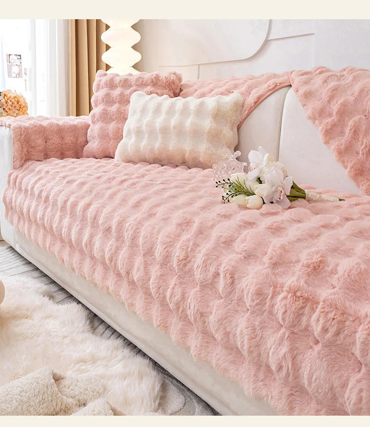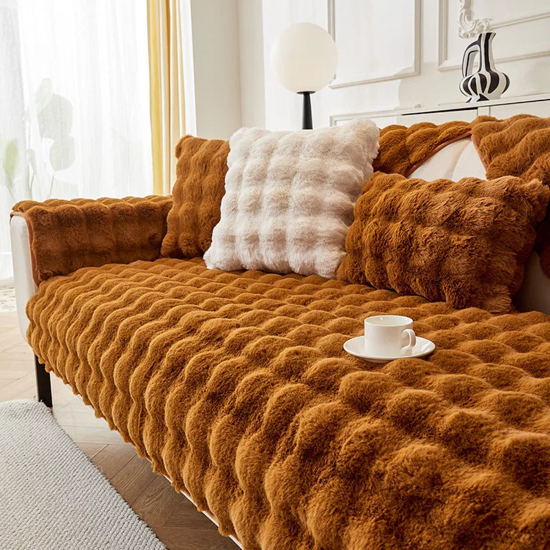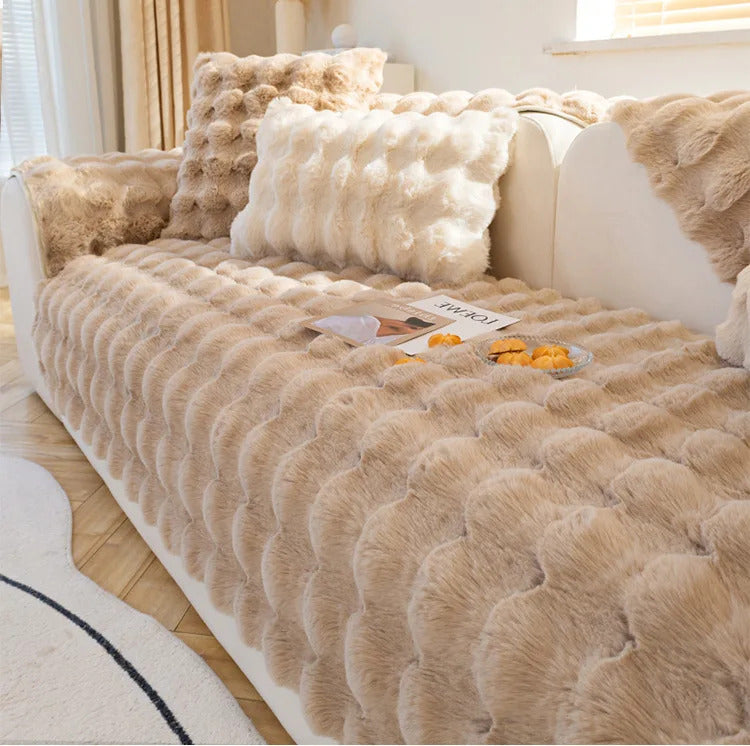 Rabbit Plush Sofa Cover Winter Thickening Warm Plush Cushions Non-Slip Living Room Leather Sofa Backrest Armrests Super Soft