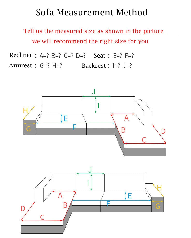 In the size options you can choose the right size, usually a set of sofas requires a combination of multiple sizes!!!The size of the sofa cover you choose should be 20~30cm larger than the actual size of the sofa.The rest can be hung down to protect the side of the sofa or tucked under the sofa to prevent slipping.