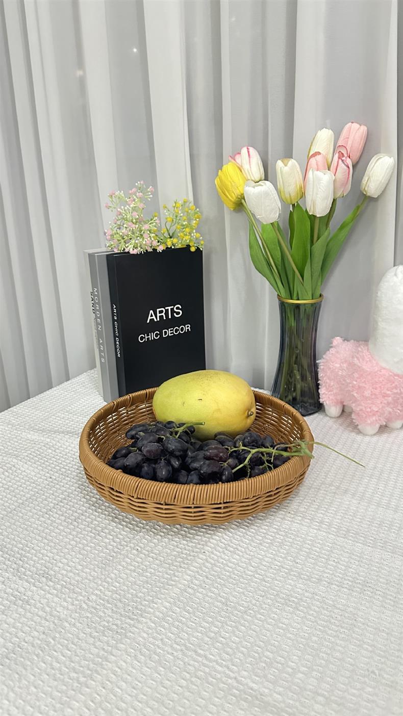 Rattan Dustpan Sun Basket Round Brown Household Storage Basket Storage Tray Handwoven Basket