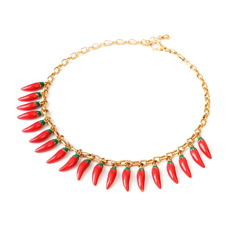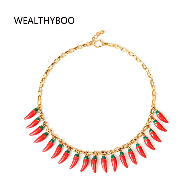 red Pepper Necklaces for Women Multilayer Collar Chain Verse Christian Jewelry 18K Gold Choker Plated/Stainless