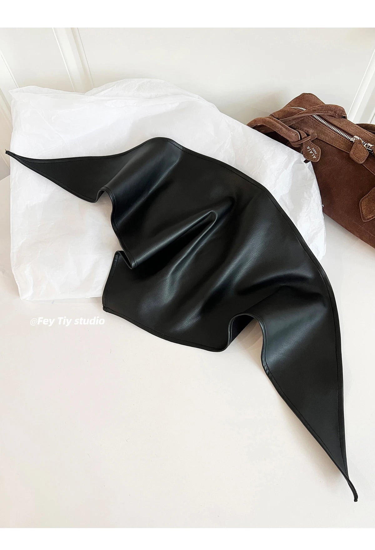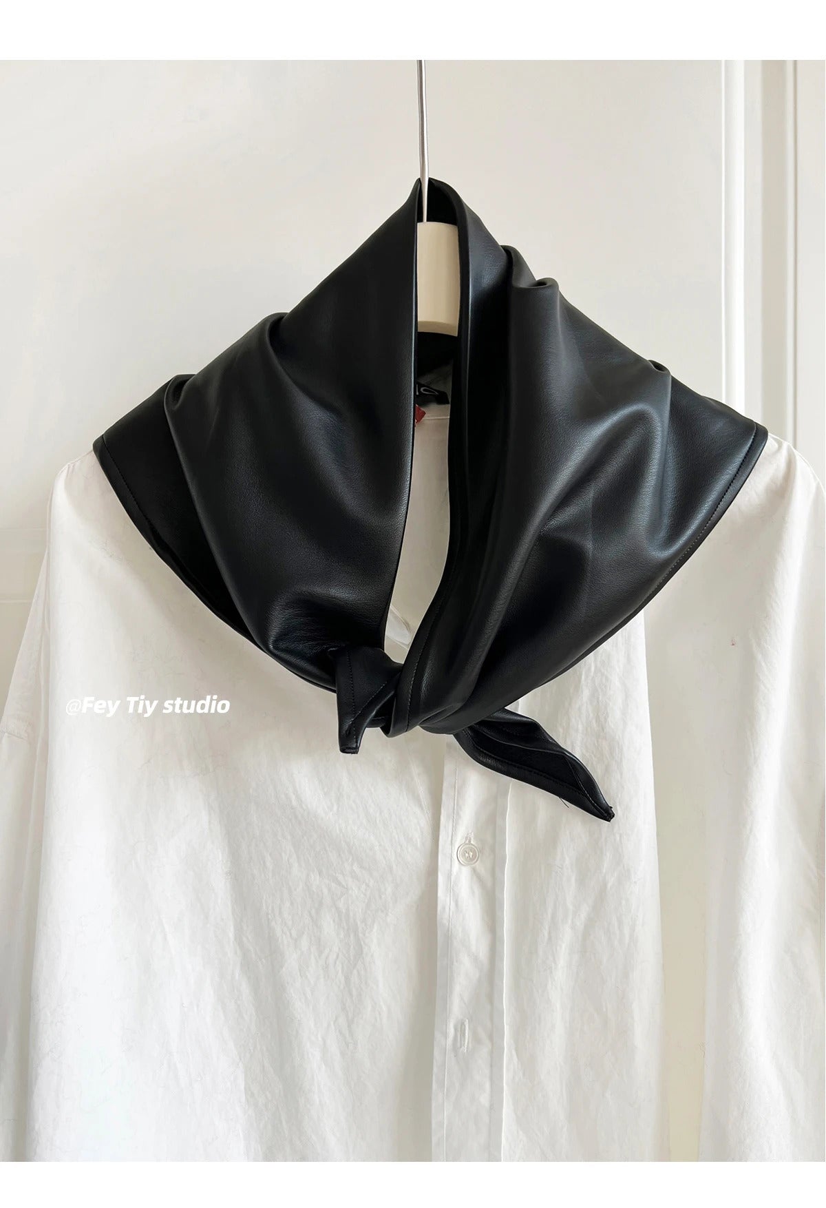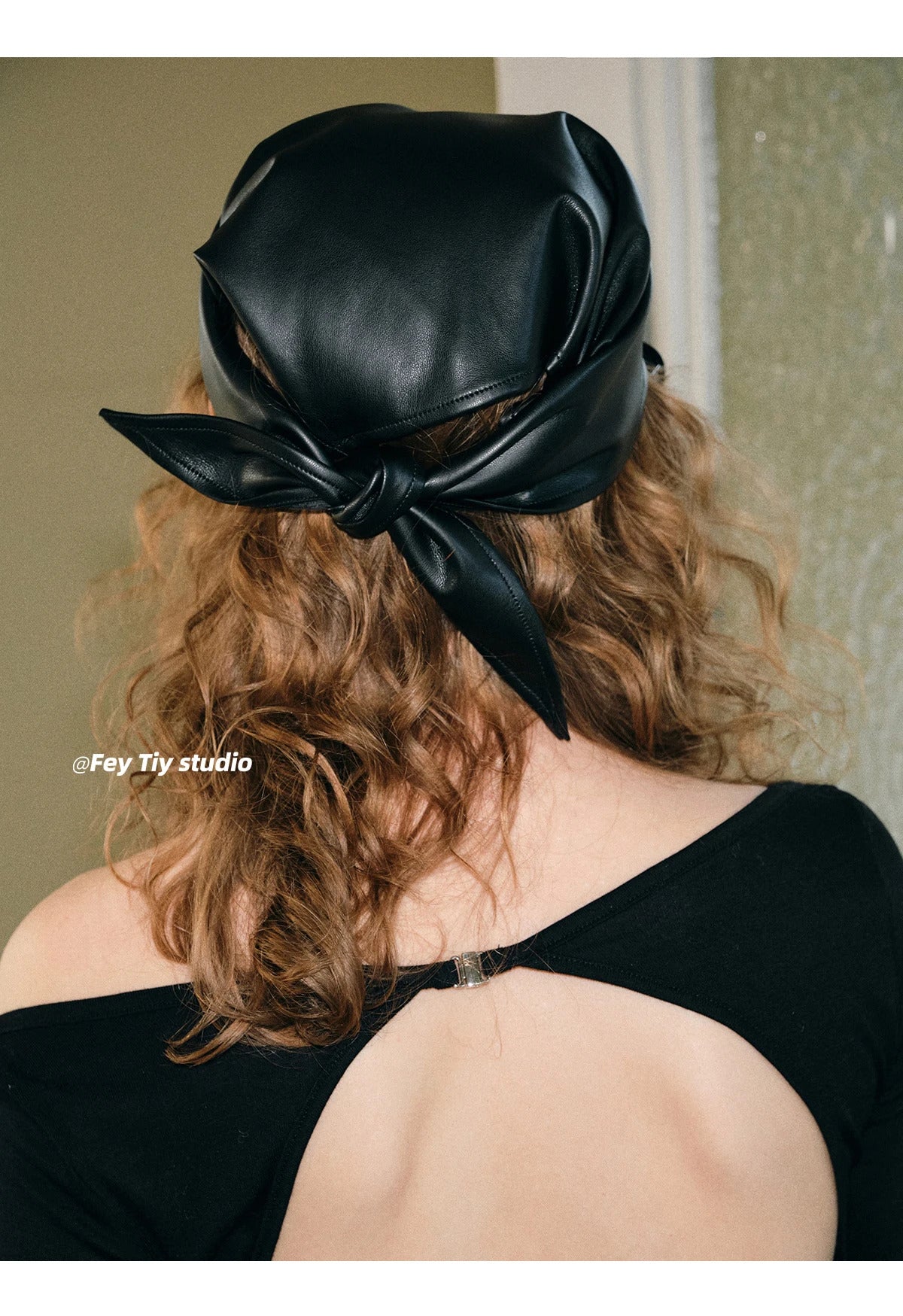 Retro Spicy PU Leather Headscarf Hat Women Summer Y2k Square Scarf Hip-hop Kerchief Korean Series Versatile Headband hair scarf