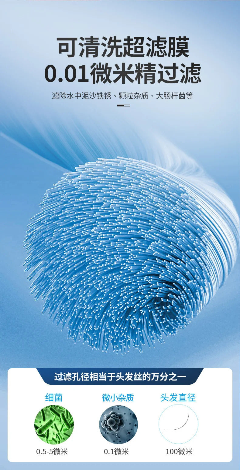 Reusable PVDF Water Filter System, High Flow, Commercial, Home, Kitchen Drink, Straight UF Filters, Lasts Exceed 5 Years, 1000L