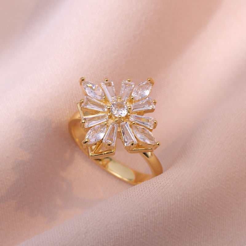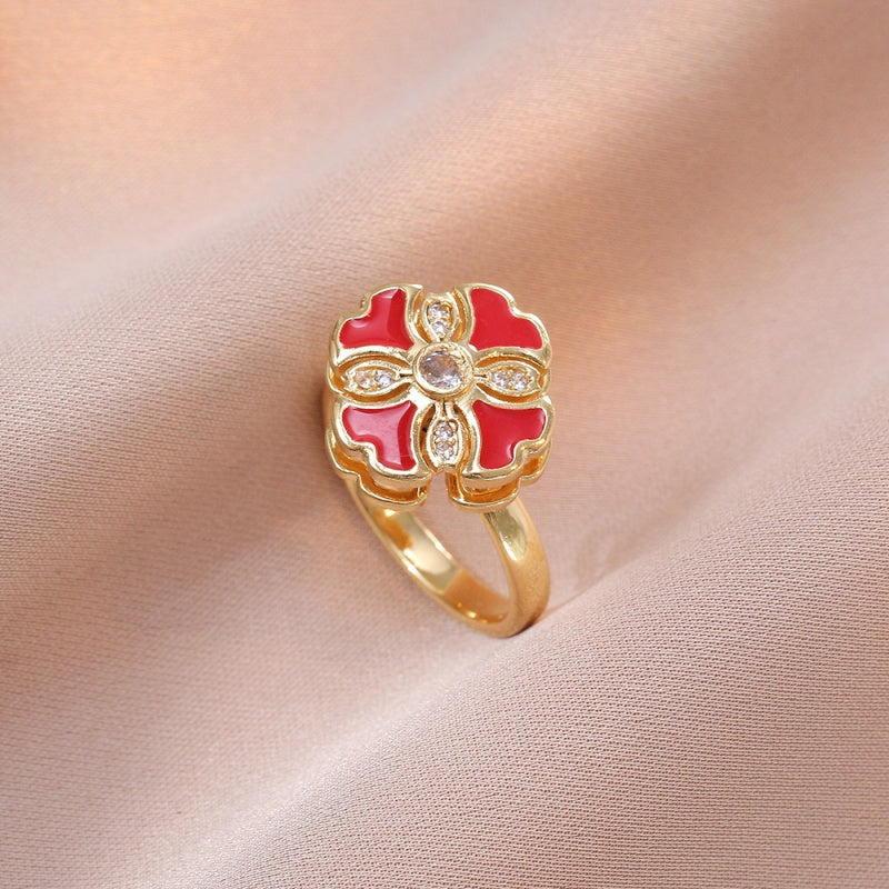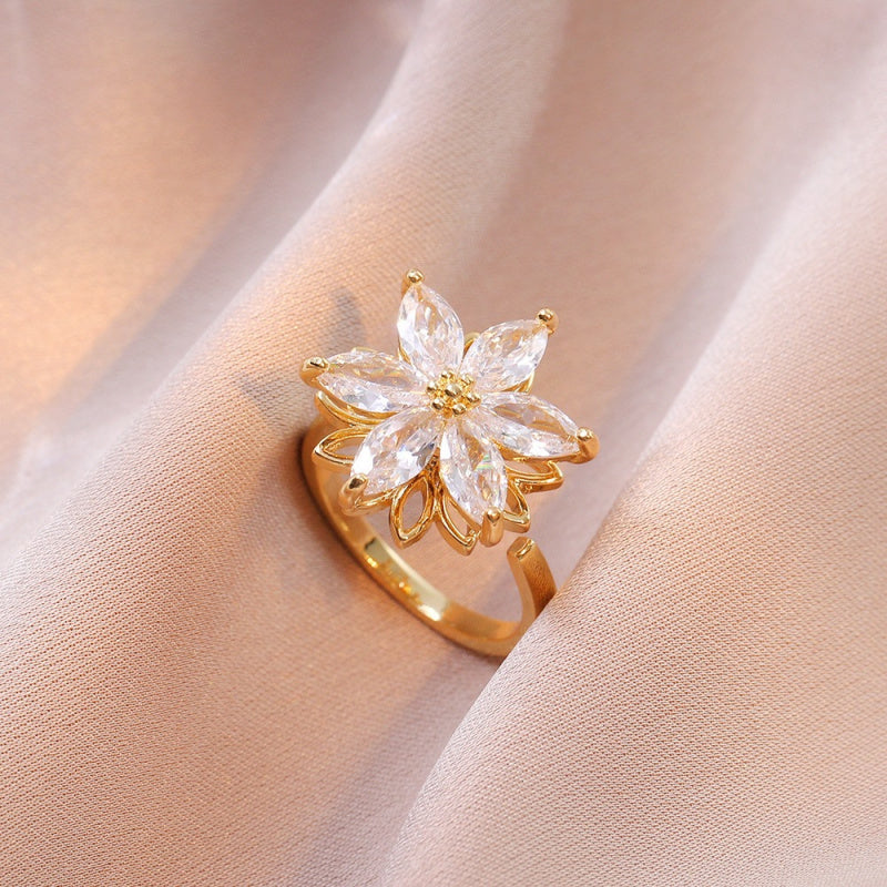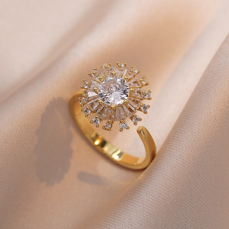 Rotating Ring for Women with Micro Paved Zircon, Elegant and Minimalist Style, Versatile Full Diamond Round Clover Ring Jewelry