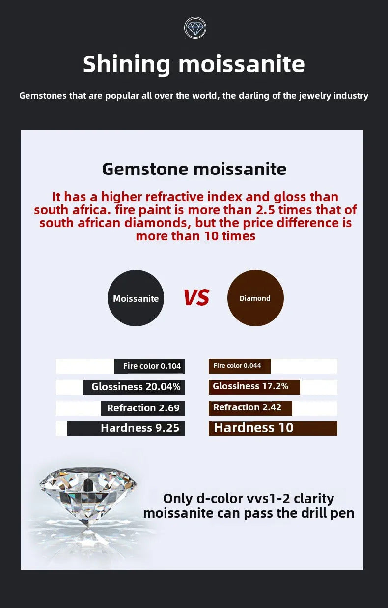 • VVS clarity, DEF color range, superior fire dispersion (0.104 vs diamond's 0.044)
