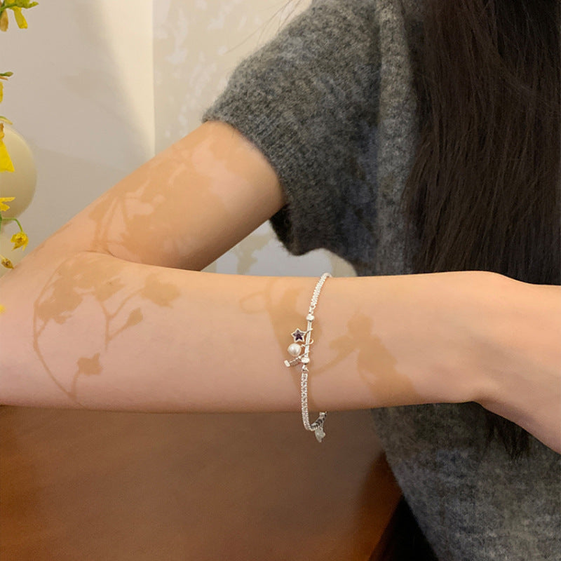 S925 Sterling Silver Star Pearl Bracelet for Women, Niche Sweet Fresh Light Luxury Versatile High-end Feel Jewelry