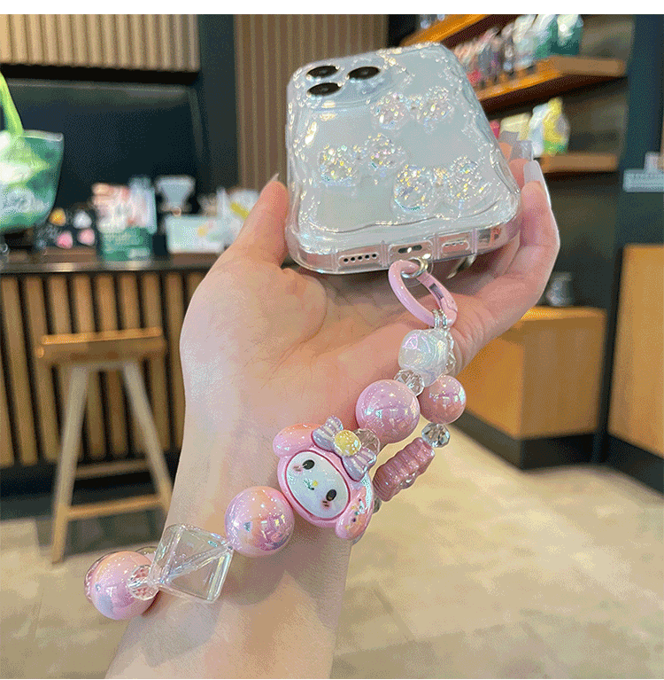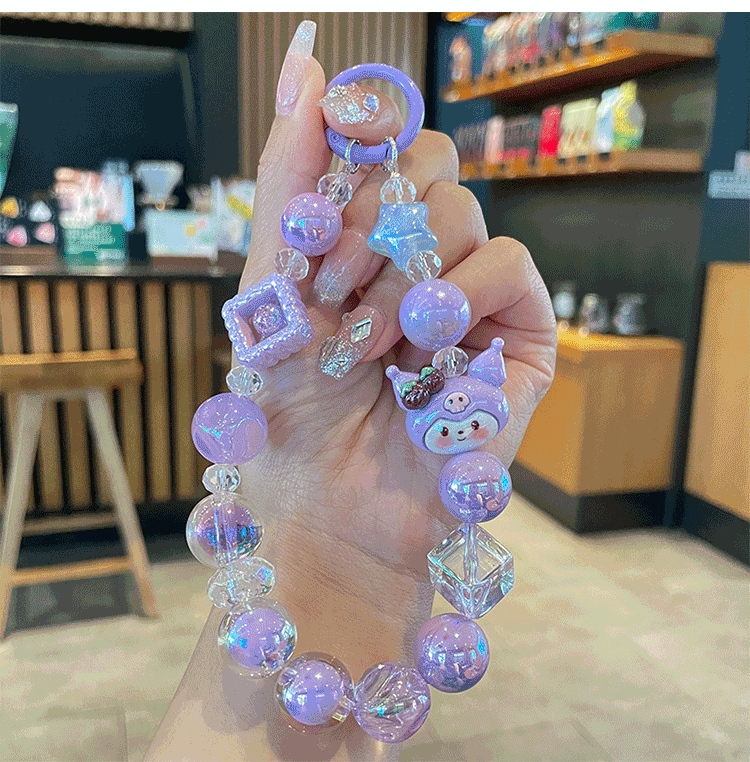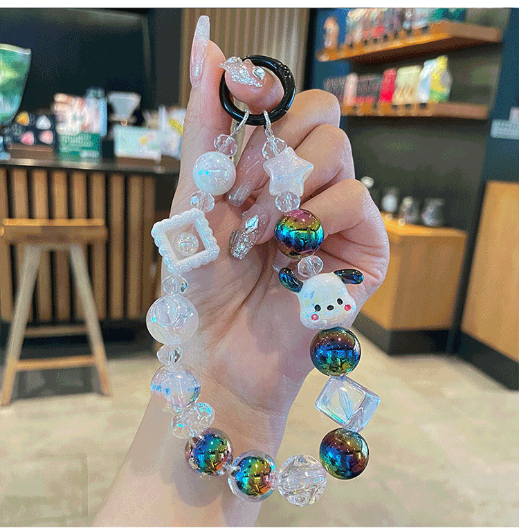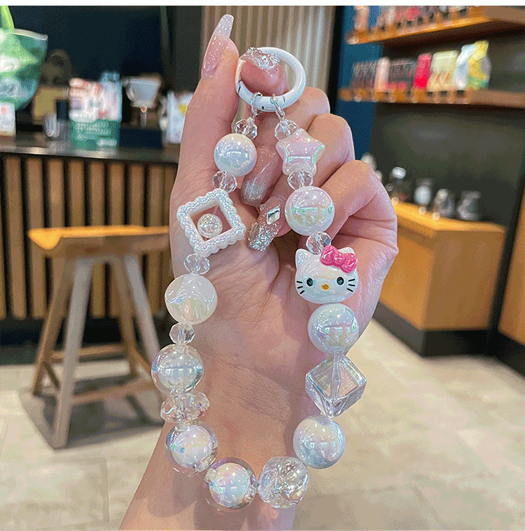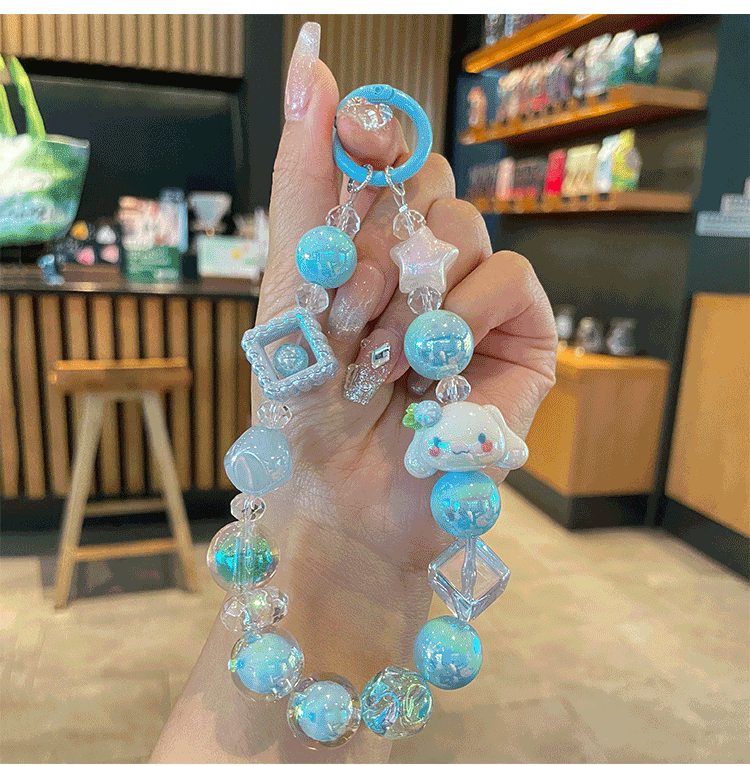 Sanrio Phone Chain Cinnamoroll Kuromi Hello Kitty Short Hanging Phone Chains Keychains Beaded Pendant Camera Chain Accessories