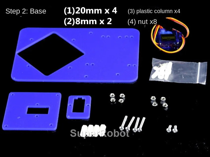 The full set of spare parts of mechanical arm includes: various color mechanical arm R3 module dual rocker module SG90 steering gear (4 PCS), not including power adapter (5V)