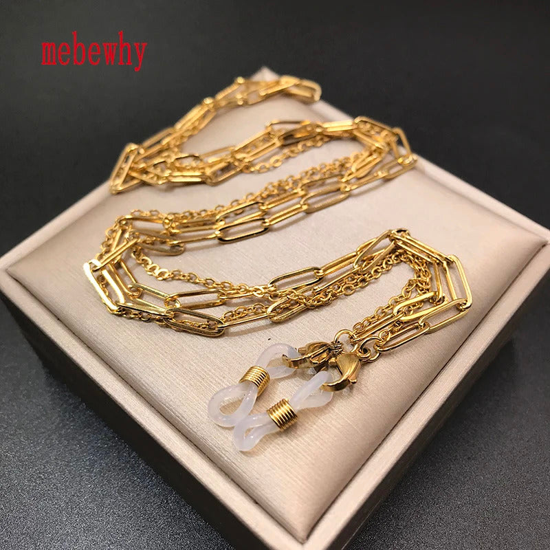 Simple Original Stainless Steel Sunglasses Two Combination Mask Glasses Chain for Women's Men's Eyewear Cord Strap Jewelry Gift