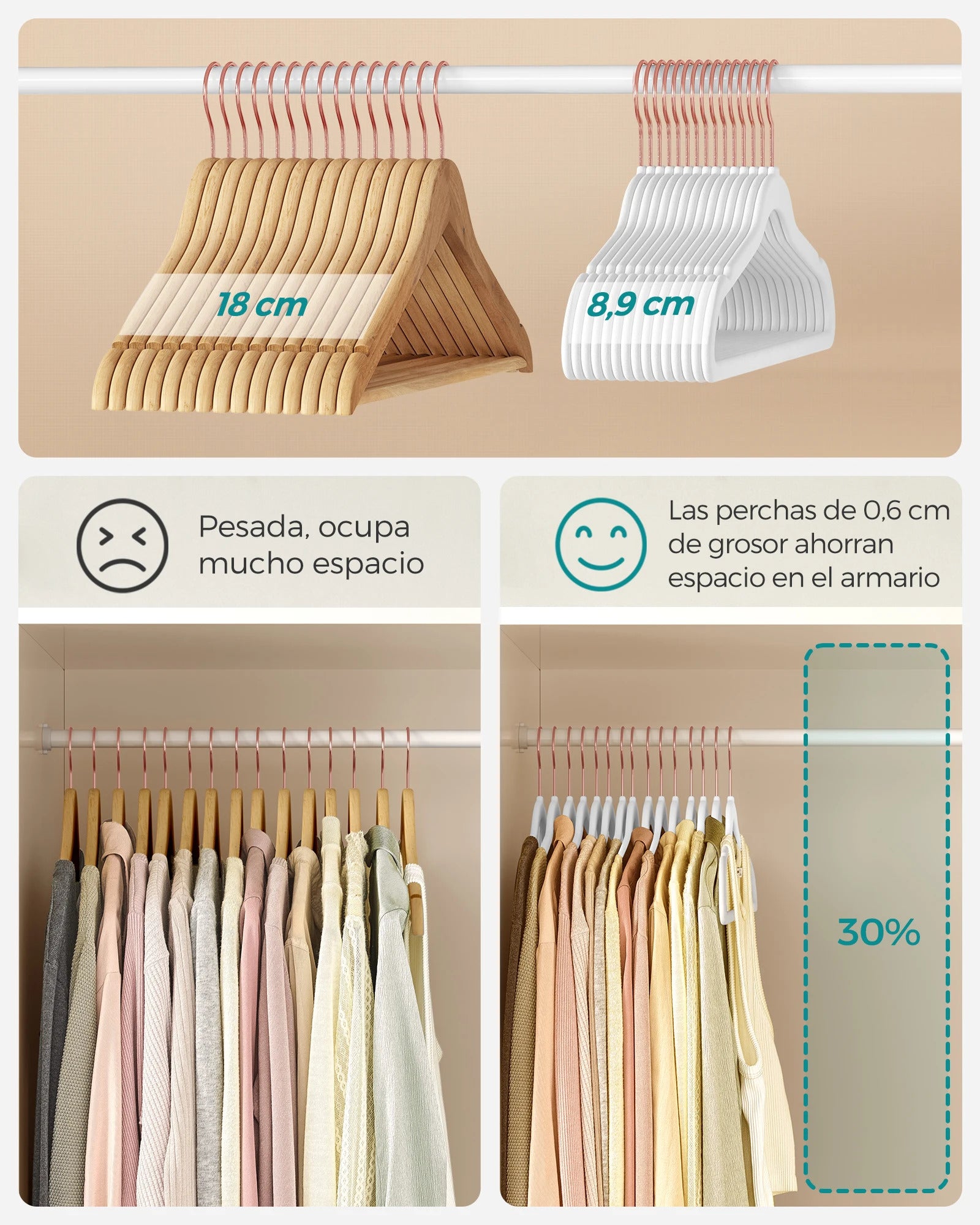 [Can Your Closet Be Larger?]Not easily, but with a thickness of only 0.2" (0.6 cm), these slim hangers save space.Also, you may hang matching coats and pants together, saving more space for more clothes