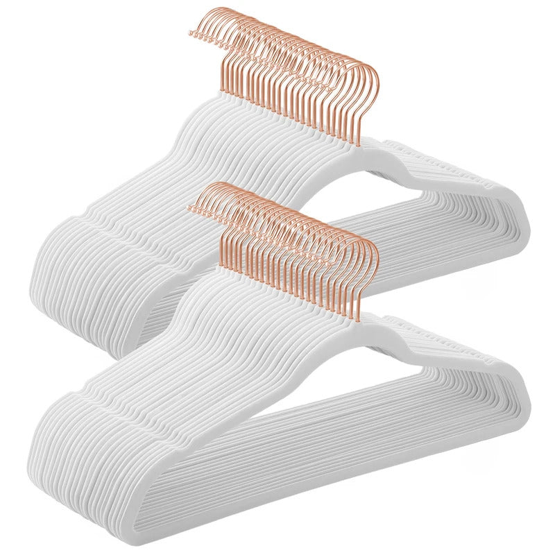SONGMICSHOME Velvet Hangers 50 Pack, Non-Slip Hangers with Rose Gold-Colored Swivel Hooks, Slim Space-Saving Hangers