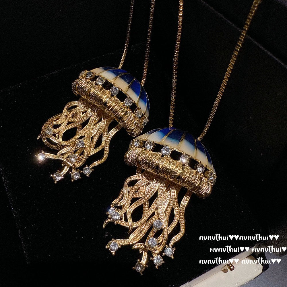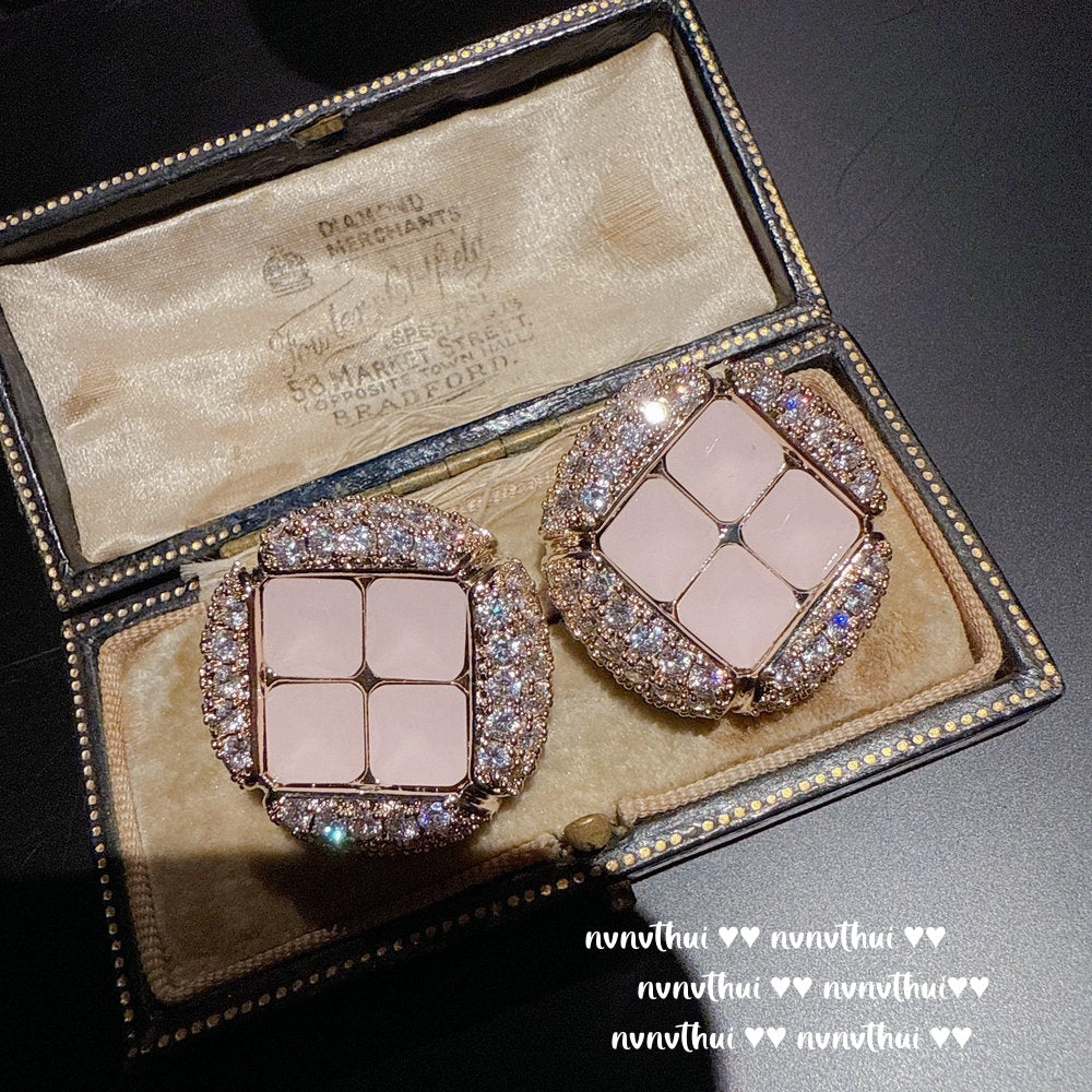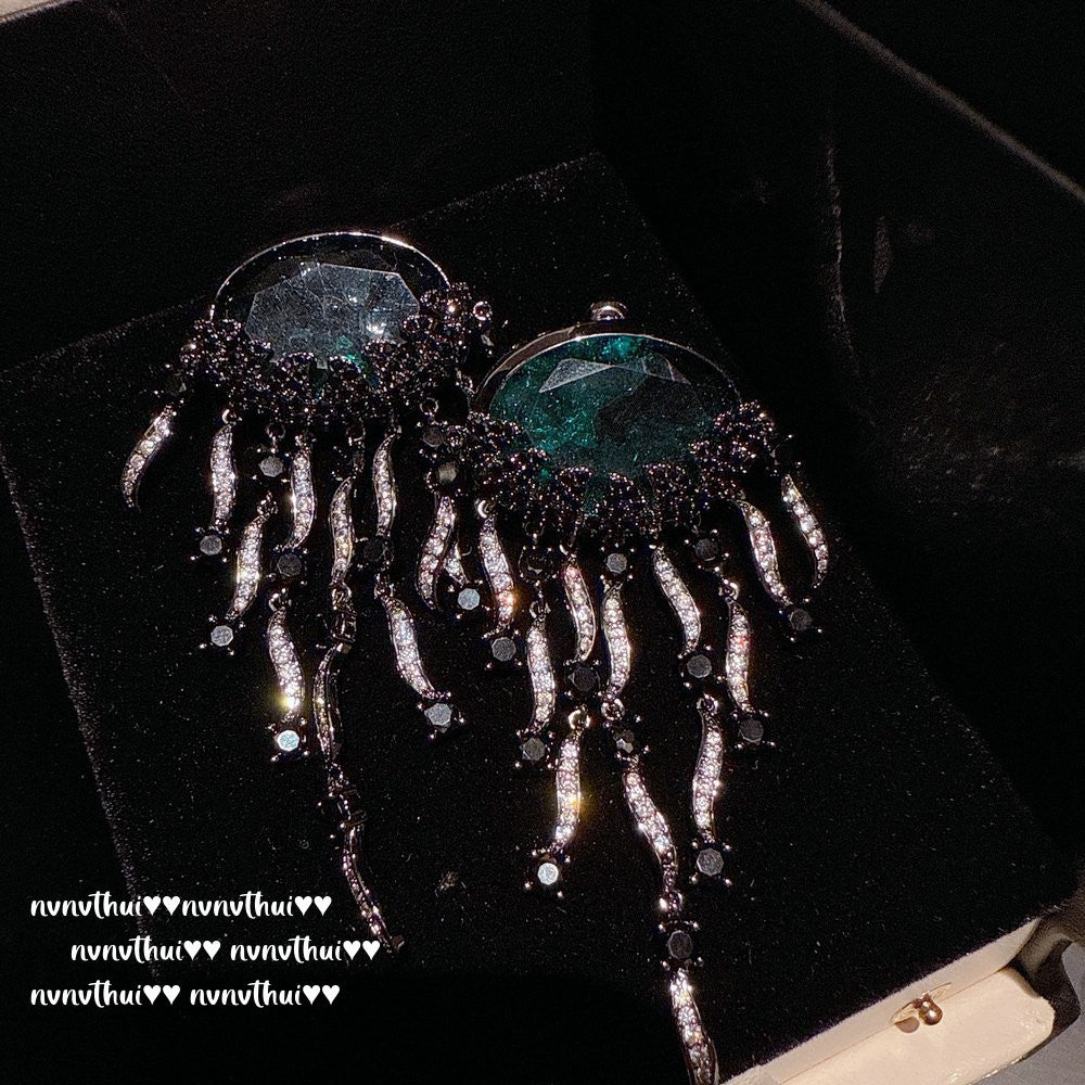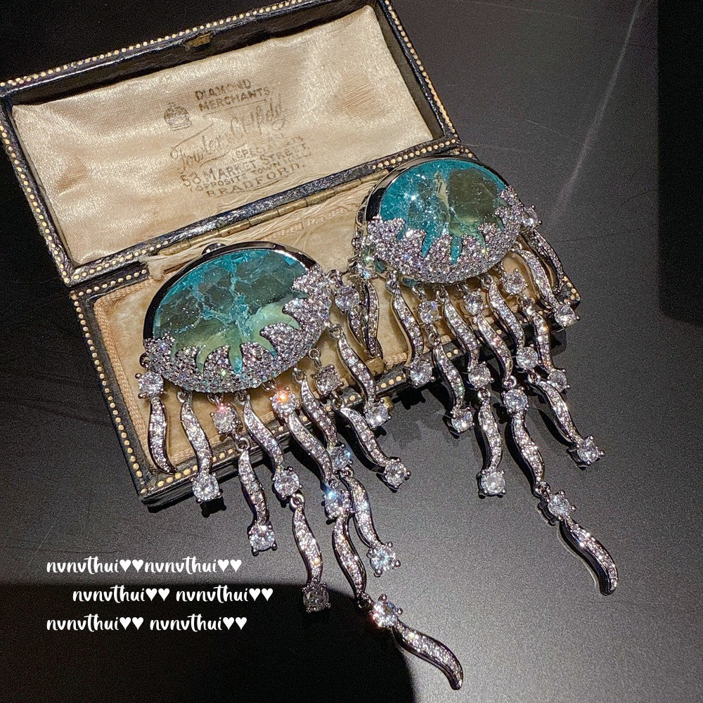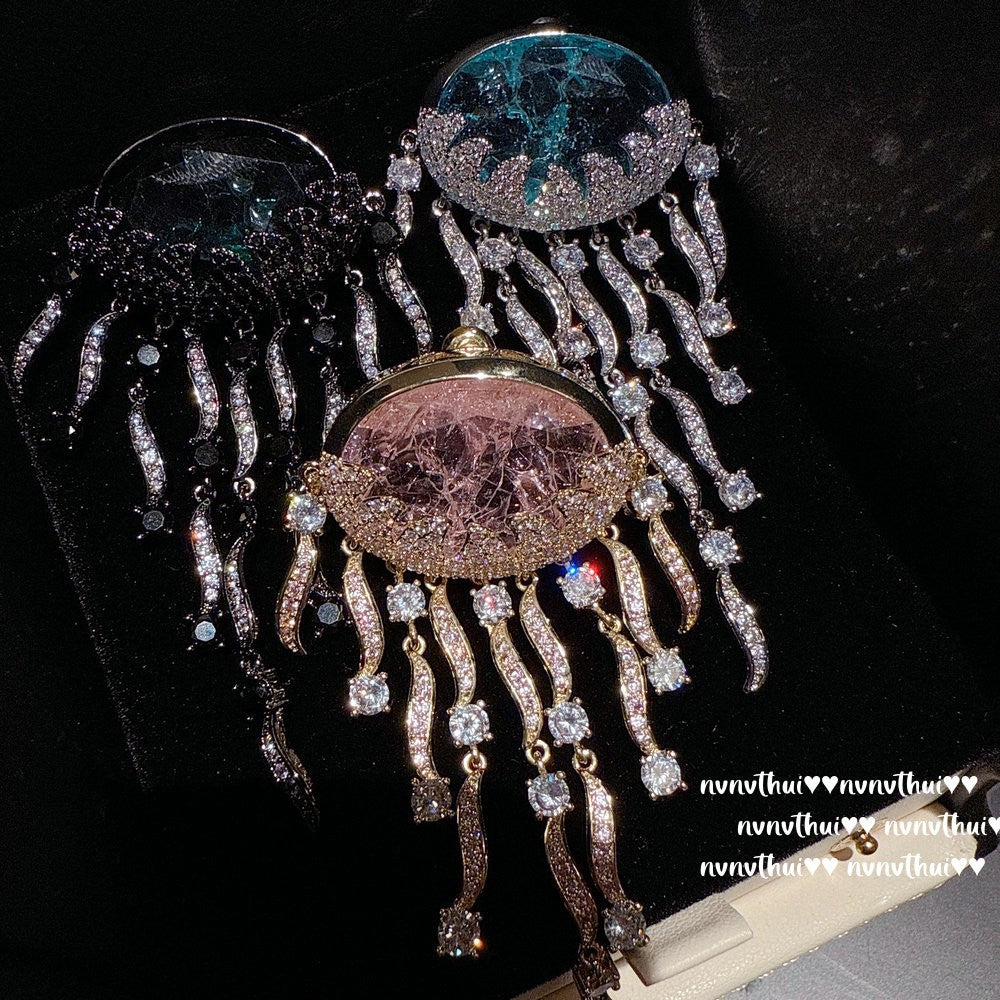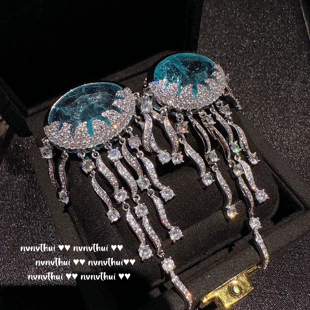 Sparkling PA Pink Cloud Pattern Jellyfish Tassel Gem Earrings Rich Woman's Happy Egg-Shaped Princess Pink Earrings